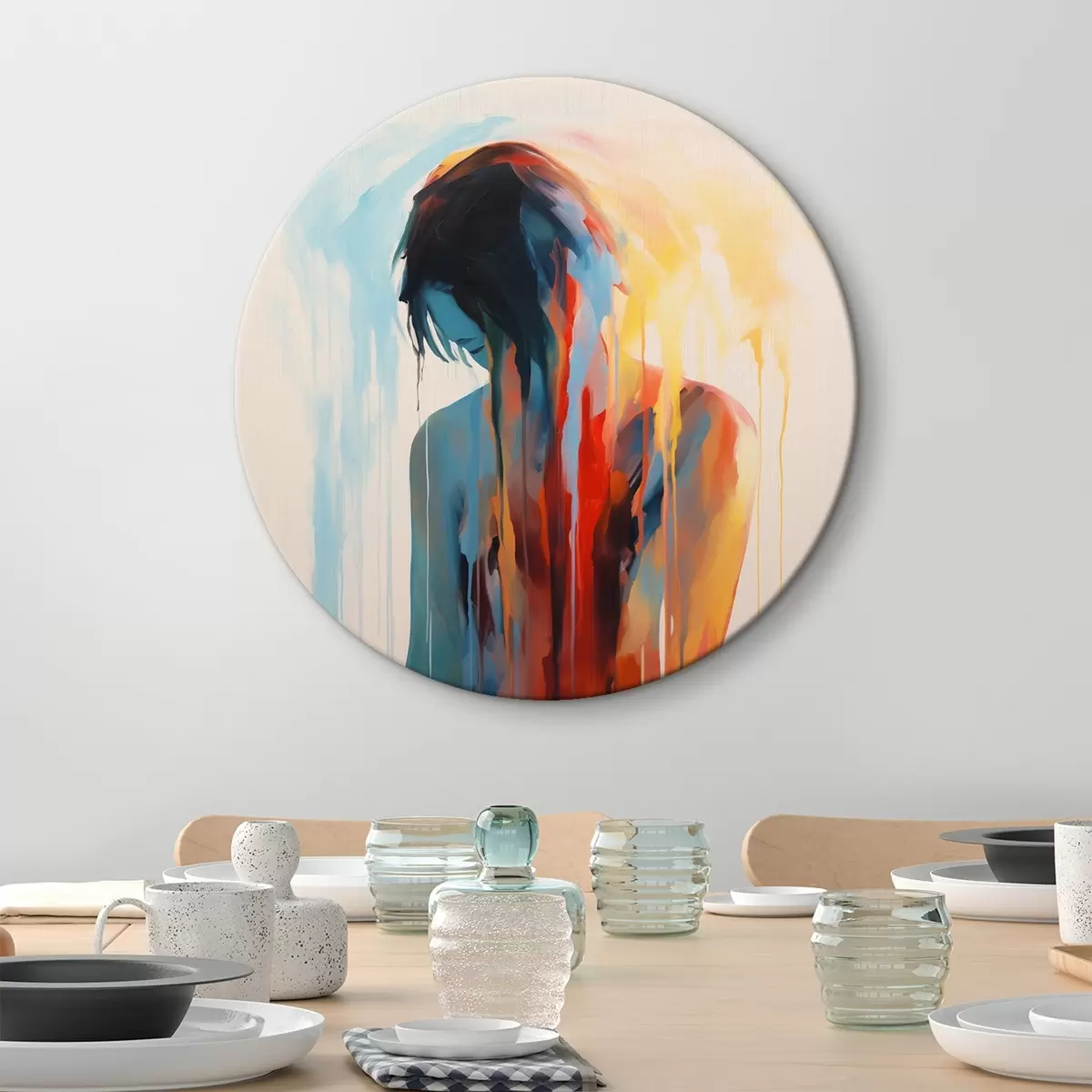 Okrągły obraz Sylwetka dziewczyny z farbami Nr r42382