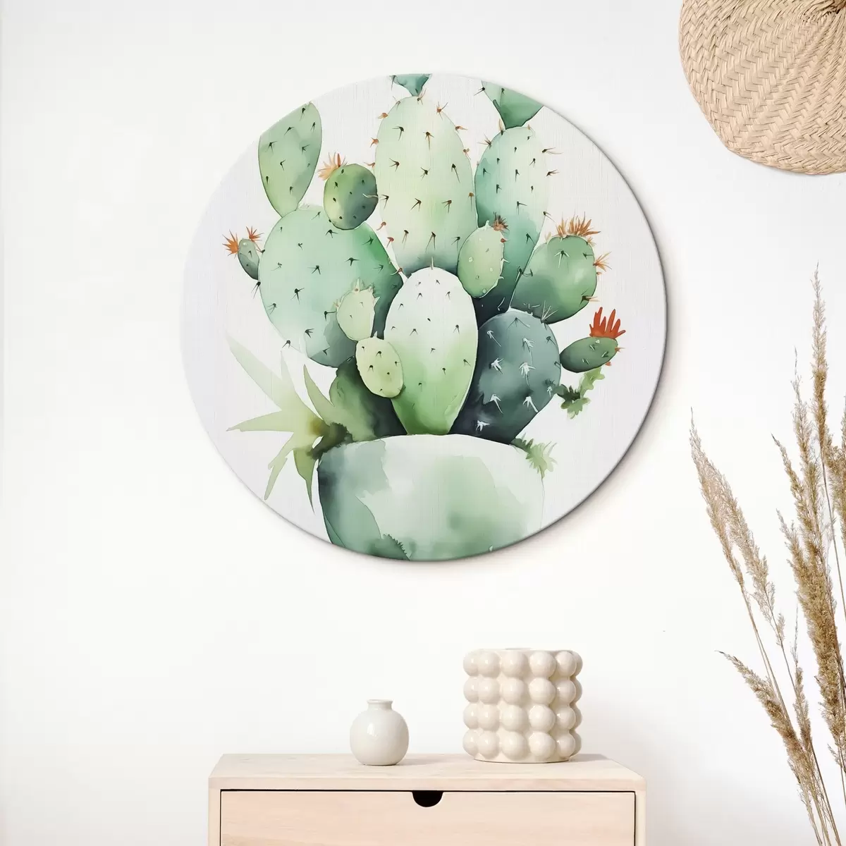 Okrągły obraz Mokra akwarela imitująca kaktus Nr r42410