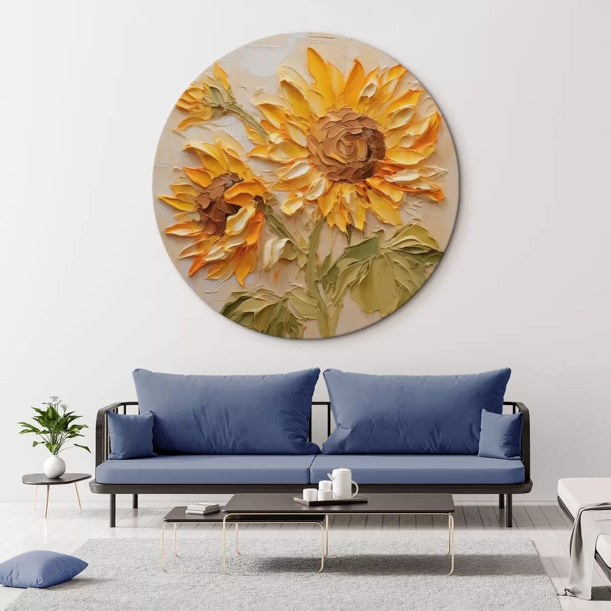 Okrągły obraz Słoneczniki imitujące pociągnięcia farbą Nr r42411