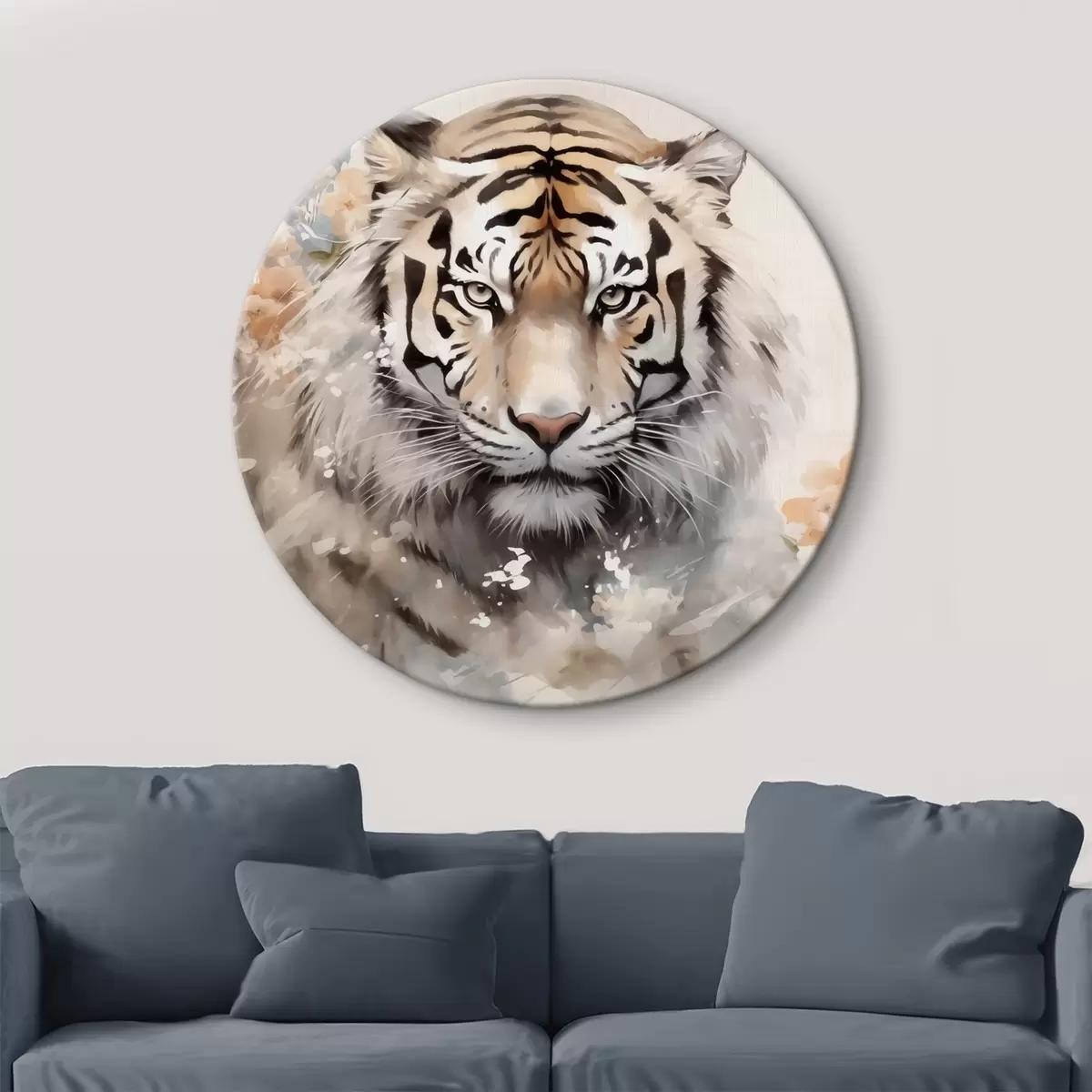 Okrągły obraz Abstrakcyjny portret tygrysa wśród plam Nr r42421
