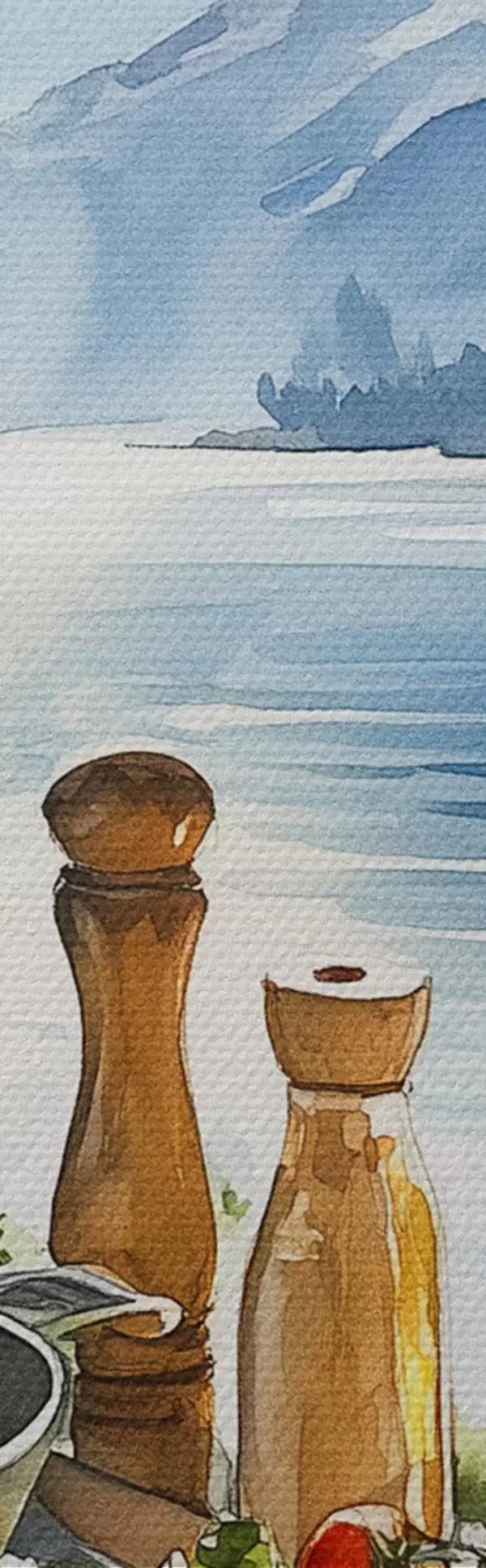 Okrągły obraz Piękny letni poranek, jezioro, akwarela, śniadanie, podróż Nr r42433