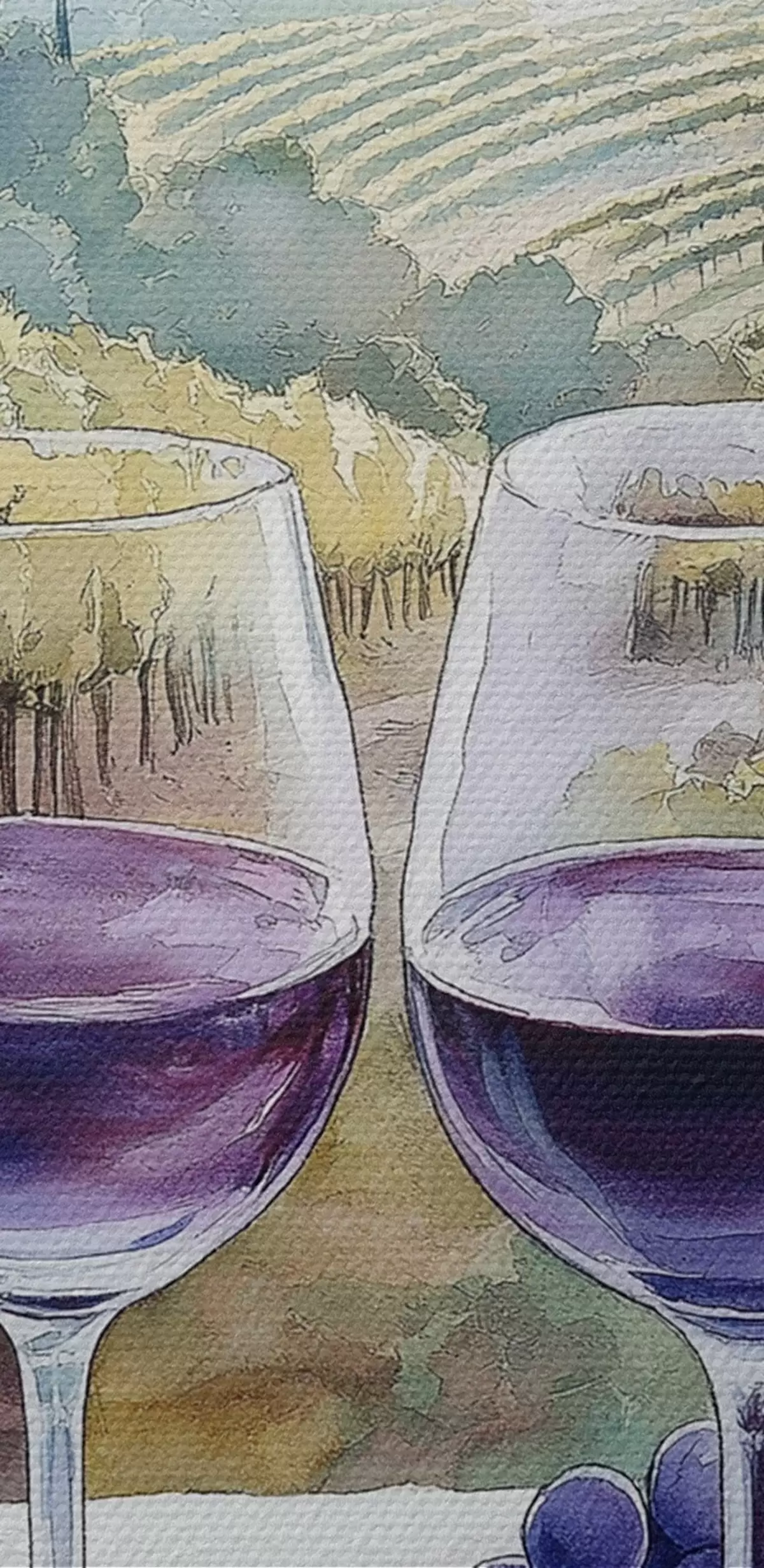 Okrągłe obrazy Pejzaże Toskanii w stylu akwareli, winnice, winogrona r42440