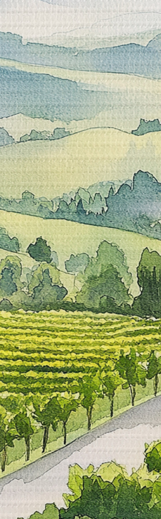 Okrągły obraz Podwórka Gpape, pejzaże w stylu akwareli, kieliszki do wina Nr r42444