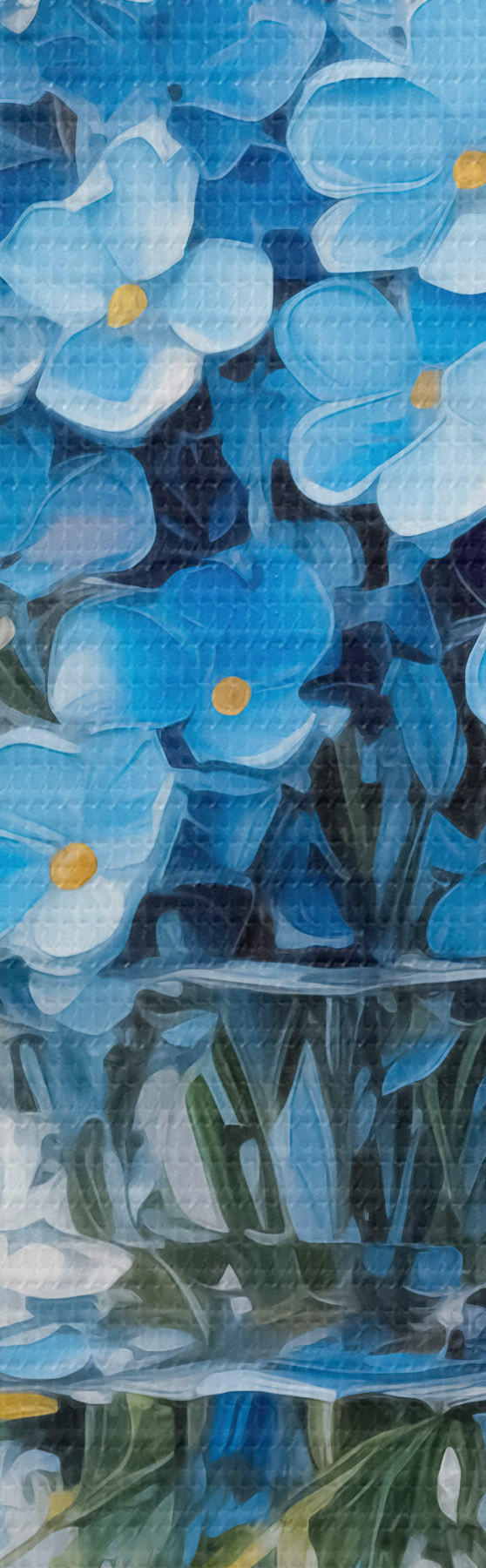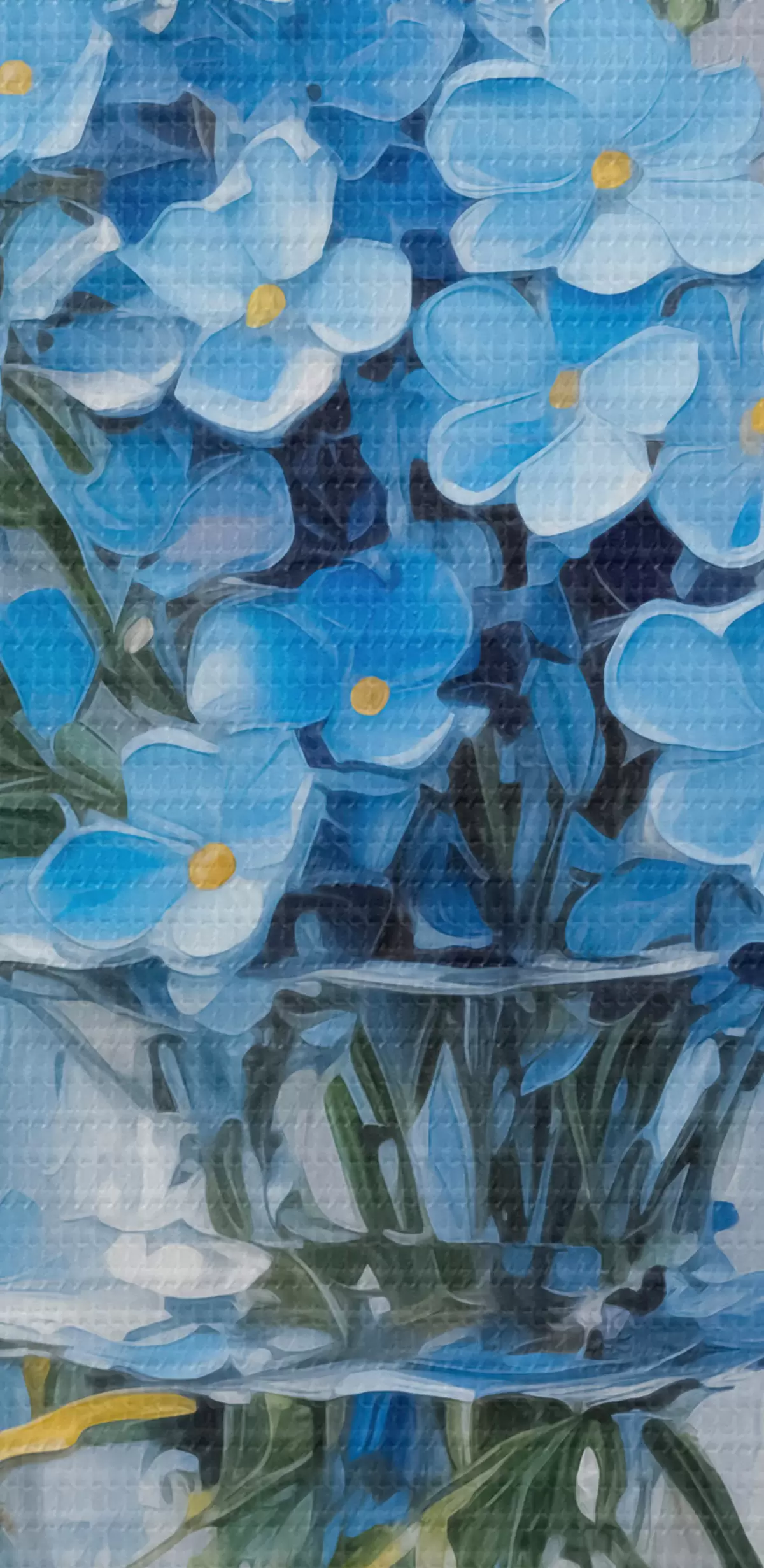 Okrągły obraz Niebieskie kwiaty w przezroczystym wazonie imitującym obraz Nr r42467