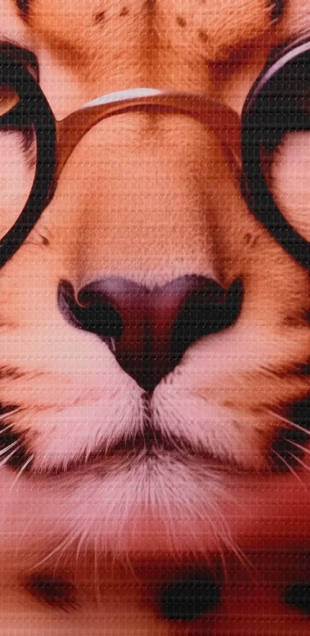 Okrągły obraz Gepard w okularach z girlandą kwiatową Nr r42477