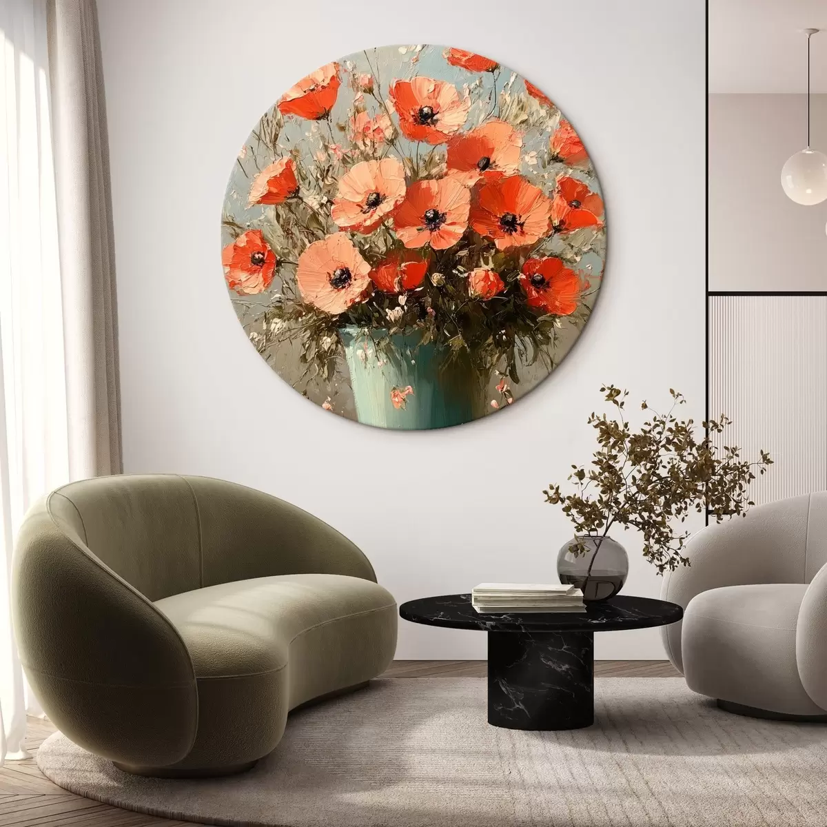 Okrągły obraz Bukiet czerwonych maków Nr r42492