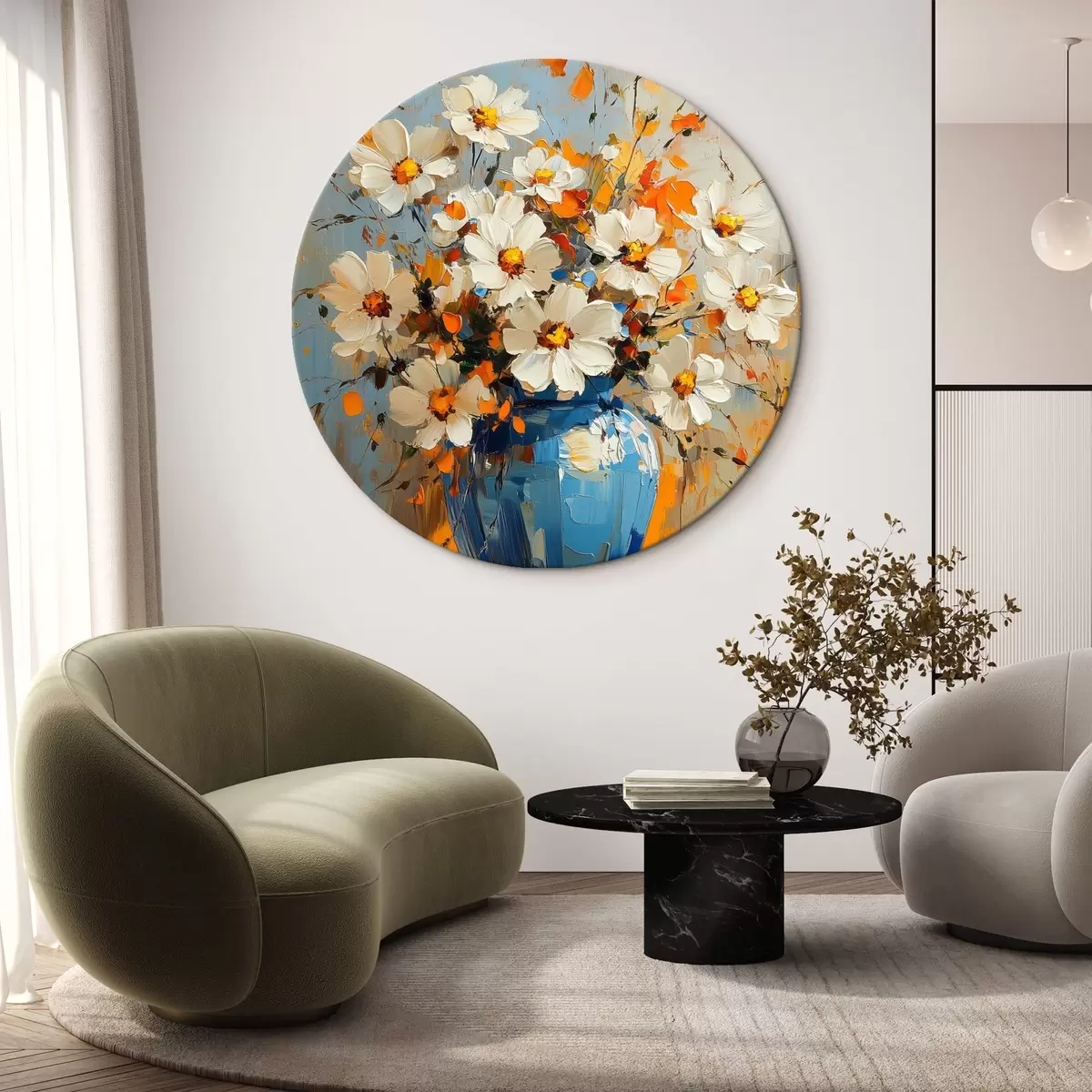 Okrągły obraz Bukiet stokrotek w wazonie Nr r42493