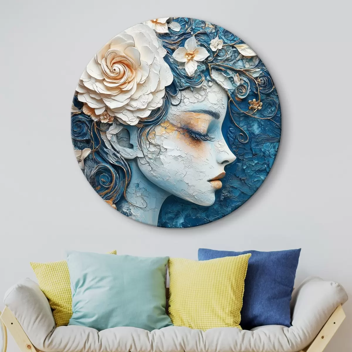 Okrągły obraz Rysunek dziewczyny z profilu w niebieskich odcieniach Nr r42495