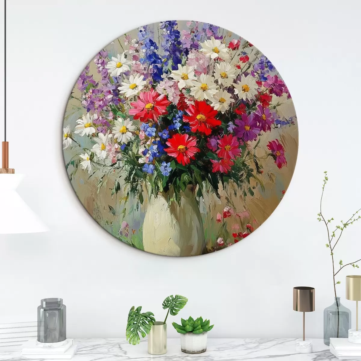 Okrągły obraz Jasny bukiet polnych kwiatów Nr r42498