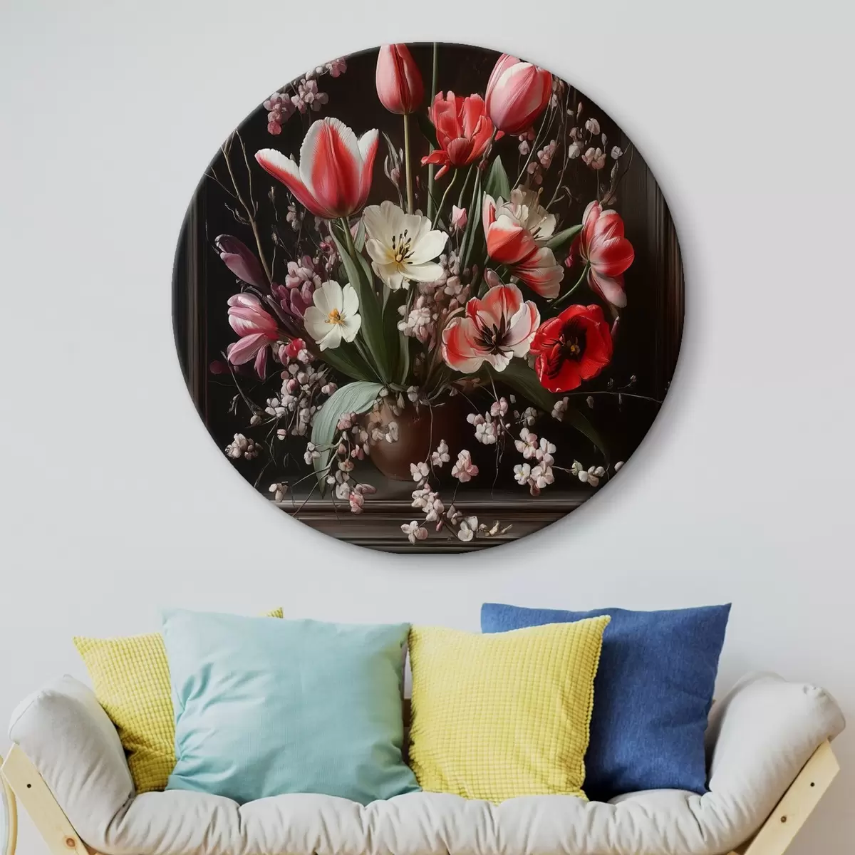 Okrągły obraz Bukiet na ciemnym tle Nr r42499