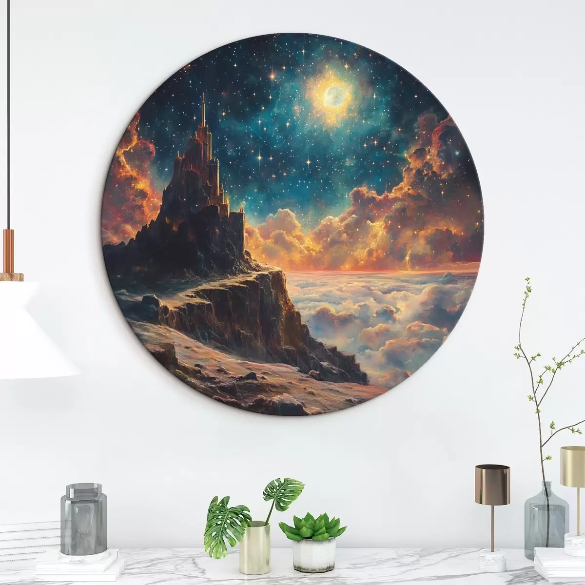 Okrągły obraz Góry i nocne rozgwieżdżone niebo Nr r42500