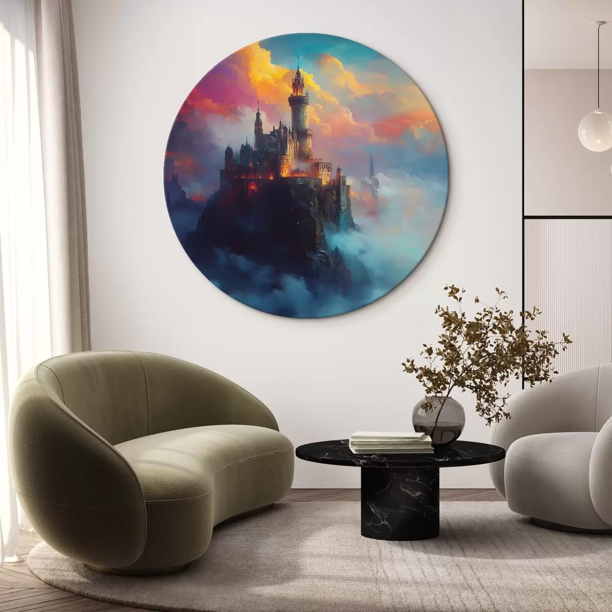 Okrągły obraz Zamek na skale w chmurach Nr r42501