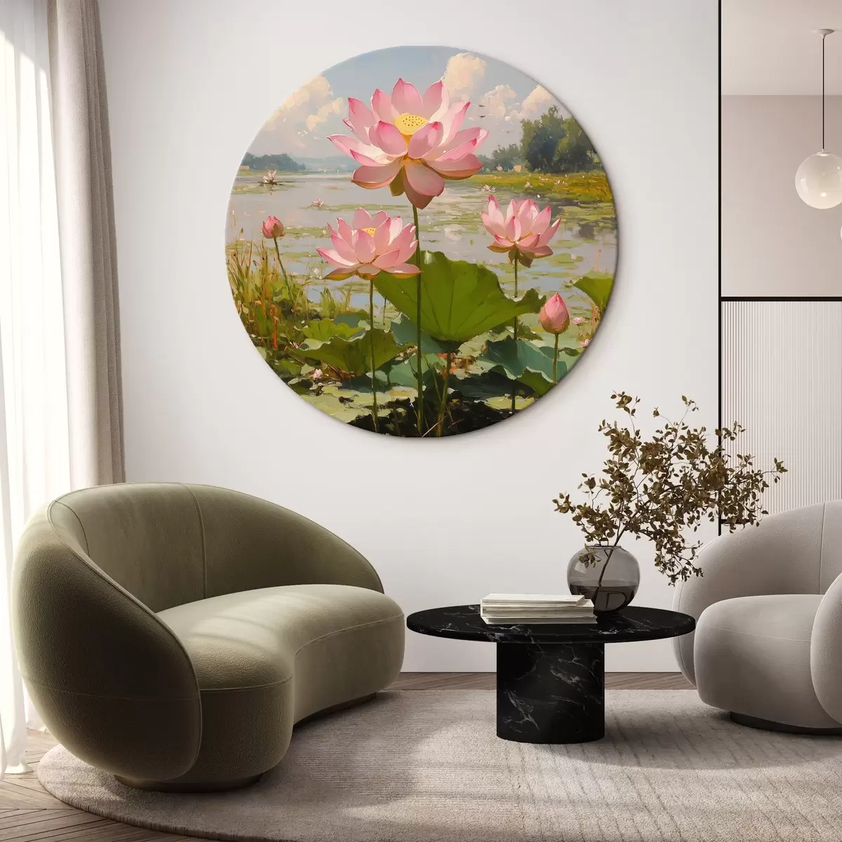 Okrągły obraz Lotosy na wodzie Nr r42502