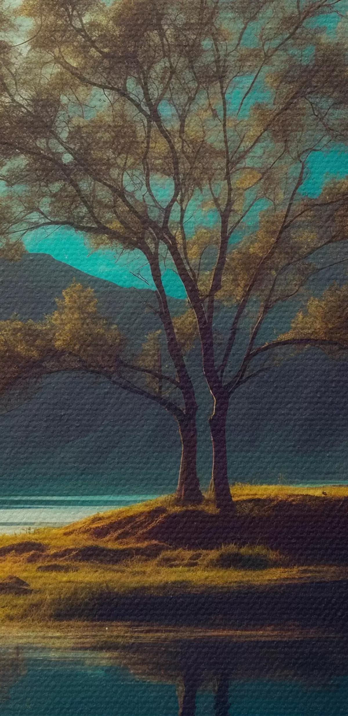 Okrągły obraz Drzewo na środku jeziora Nr r42520