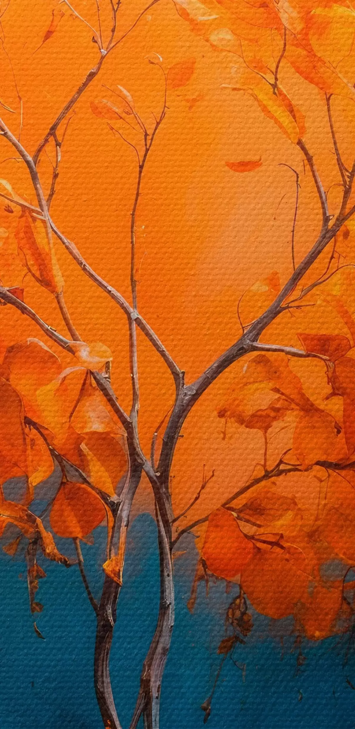 Okrągłe obrazy Pomarańczowe drzewo na niebieskim tle w stylu malarstwa akrylowego r42525