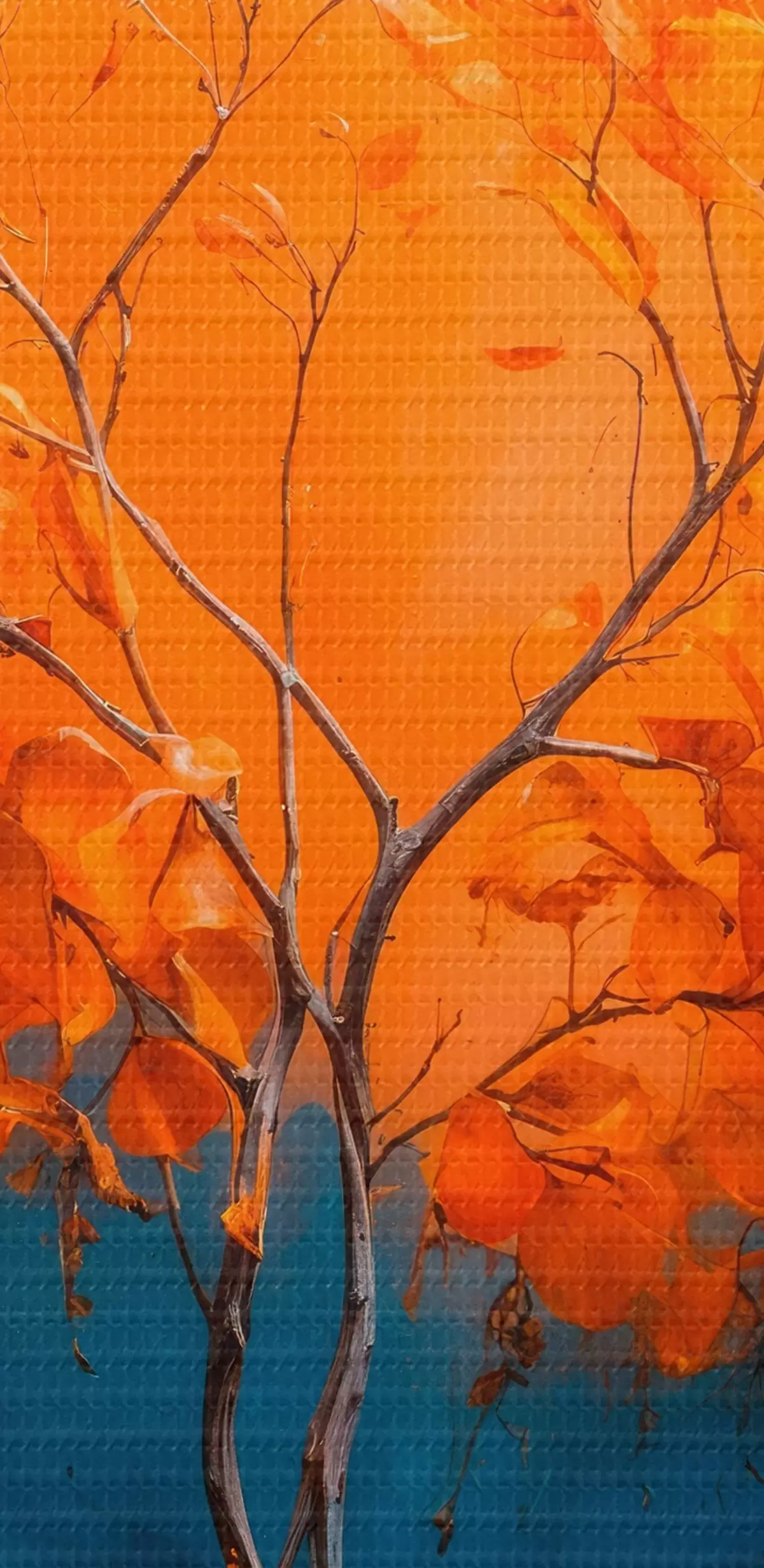 Okrągły obraz Pomarańczowe drzewo na niebieskim tle w stylu malarstwa akrylowego Nr r42525