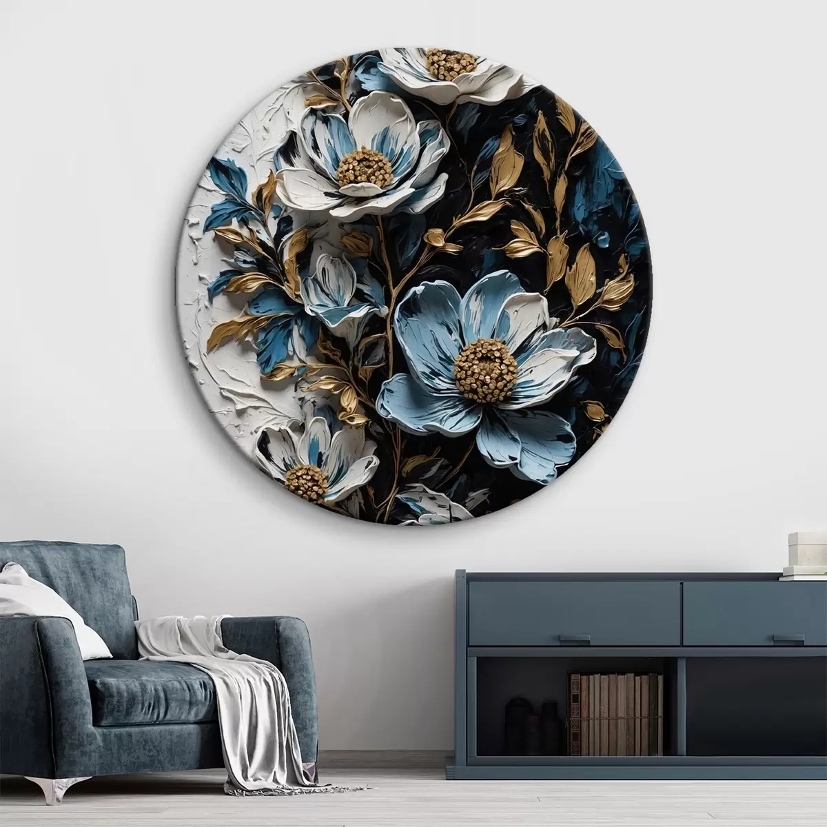 Okrągły obraz Kwiaty i łodygi na czarno-białym tle w stylu malarstwa olejnego Nr r42532