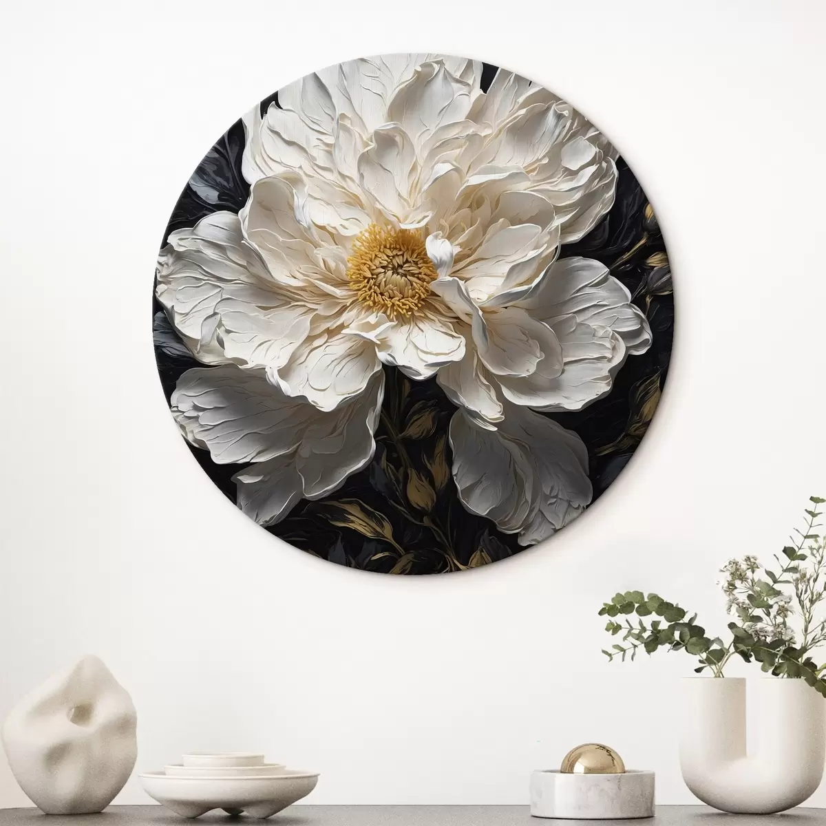 Okrągły obraz Biały kwiat na czarnym tle w stylu malarstwa olejnego Nr r42544