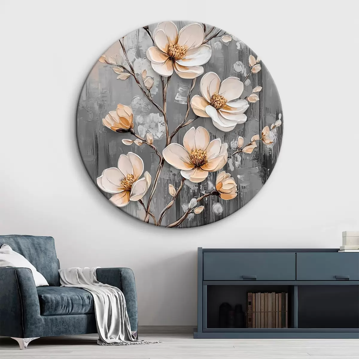 Okrągły obraz Abstrakcyjna gałąź z kwiatami Nr r42555