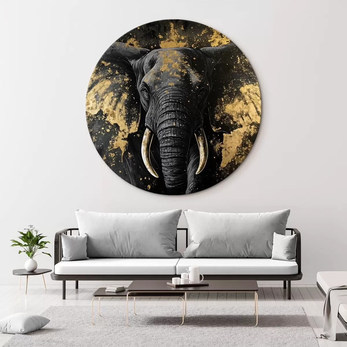 Okrągłe obrazy Stylowy czarny słoń r42602