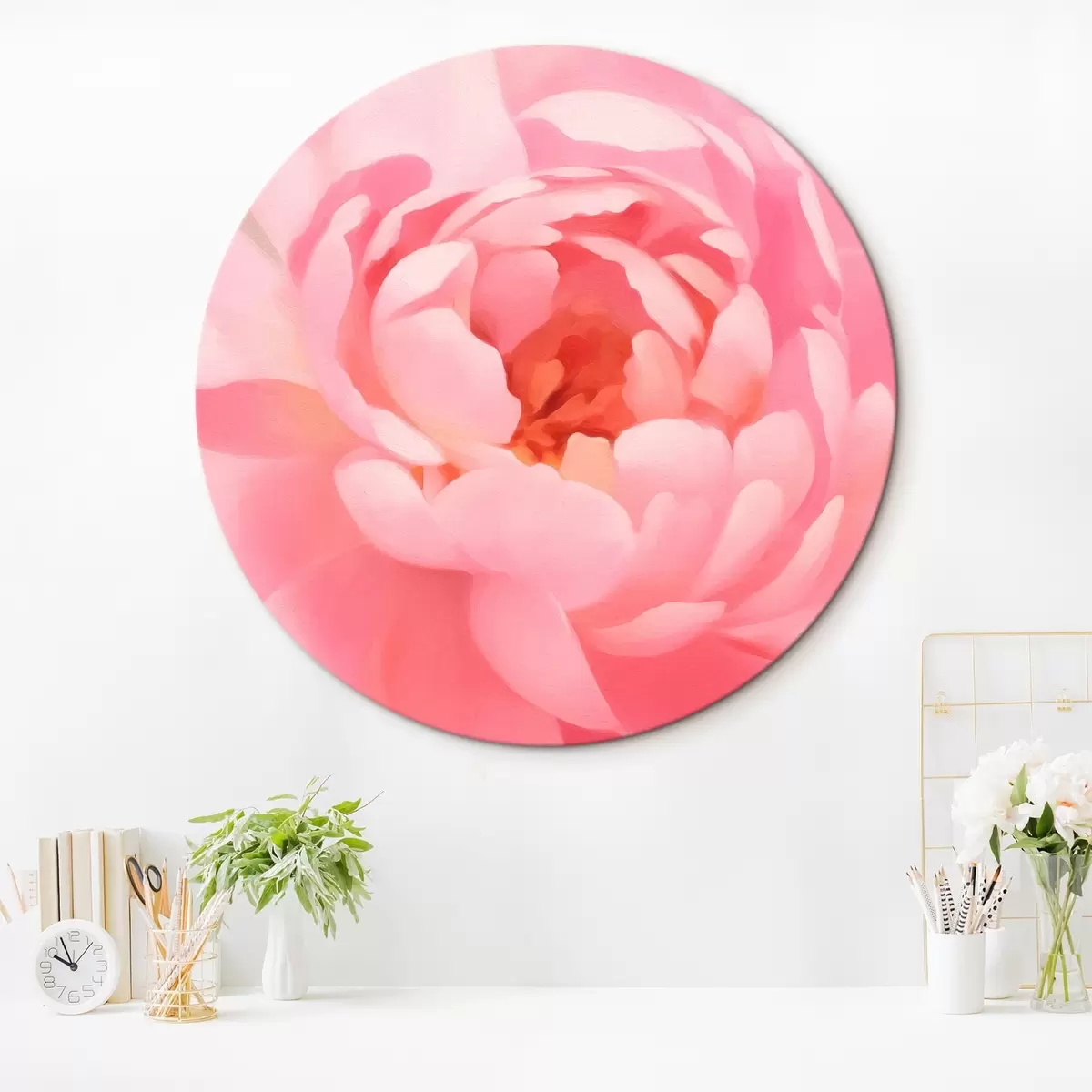 Okrągłe obrazy Duża różowa piwonia r42639