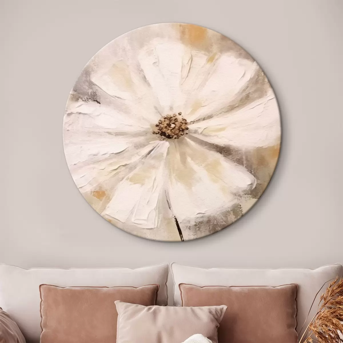 Okrągły obraz Trend białych kwiatów Nr r42640