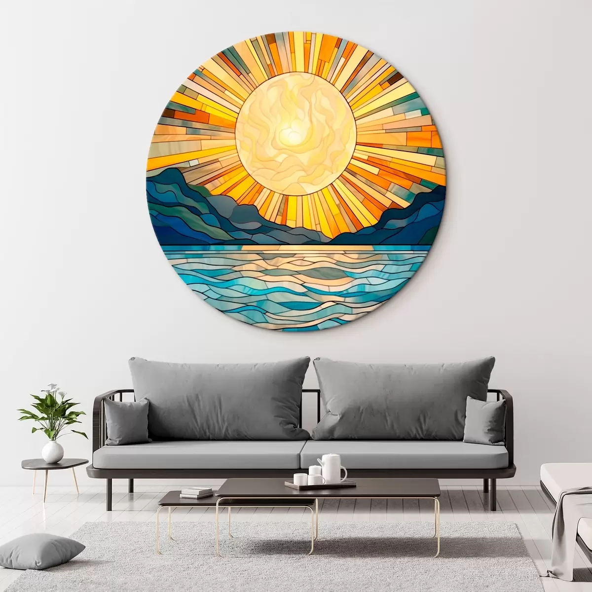 Okrągłe obrazy Słońce i fale w stylu sztuki witrażowej r42654