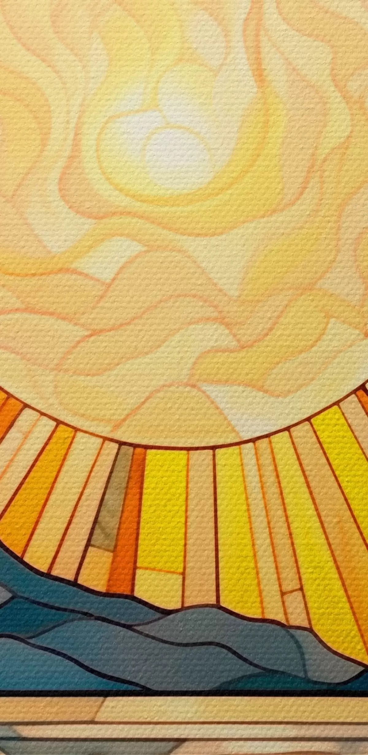 Okrągły obraz Słońce i fale w stylu sztuki witrażowej Nr r42654