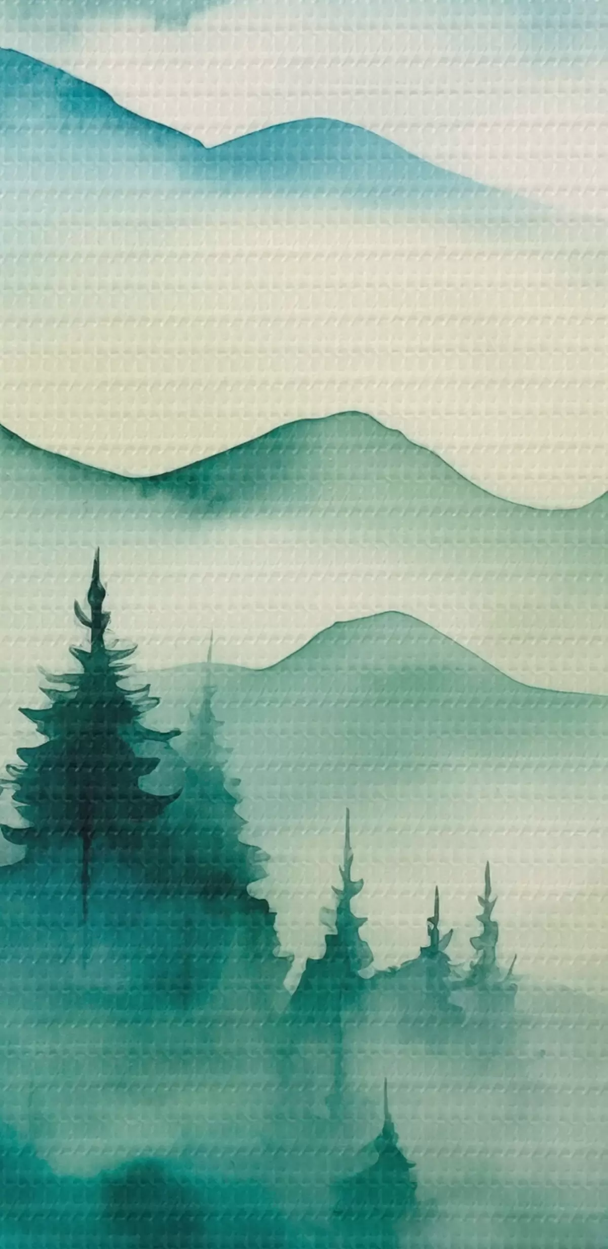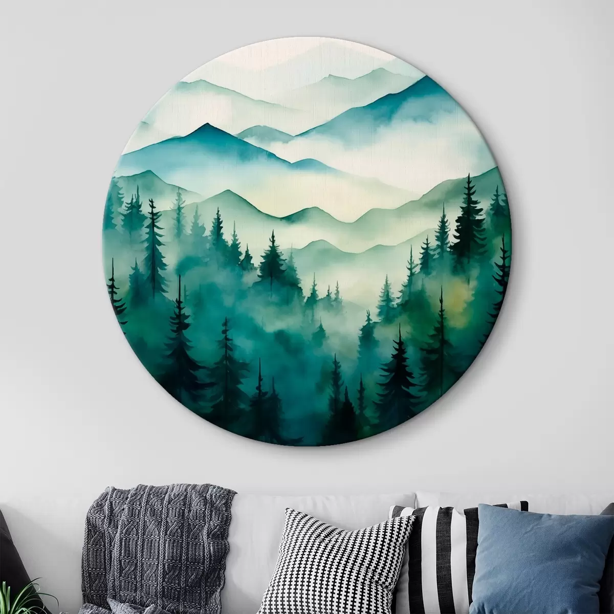 Okrągłe obrazy Mglisty krajobraz z górami i lasem r42662