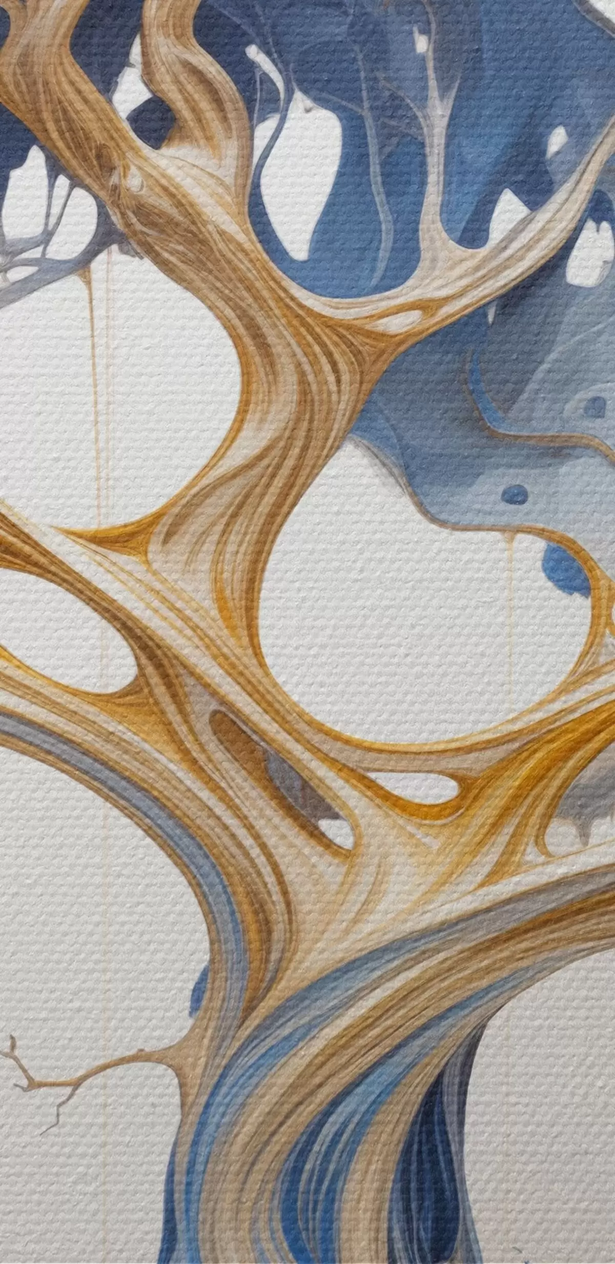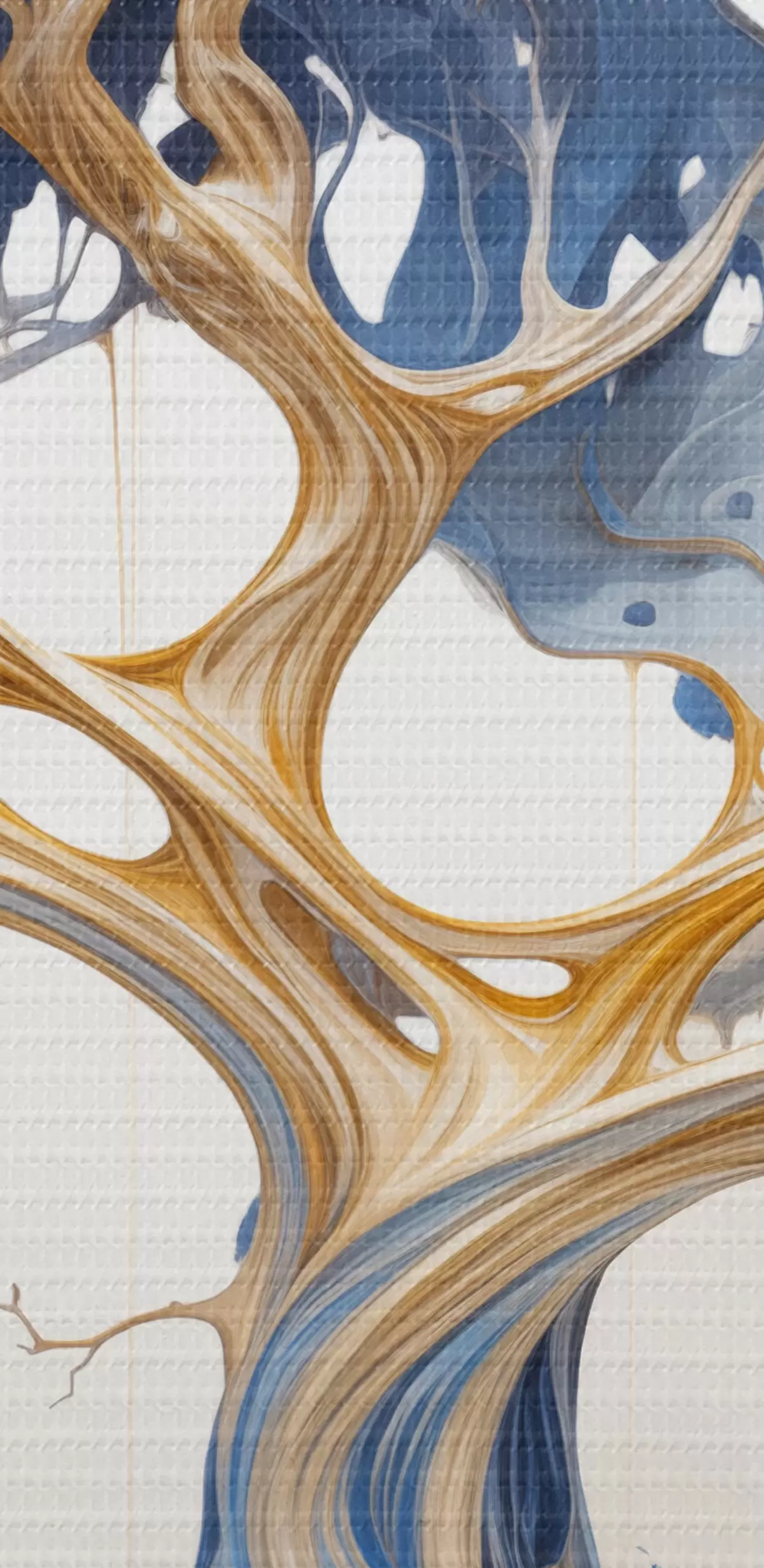 Okrągły obraz Stylizowane drzewo ze skomplikowanymi gałęziami i liśćmi, z mieszanką niebieskich i żółtych odcieni Nr r42722