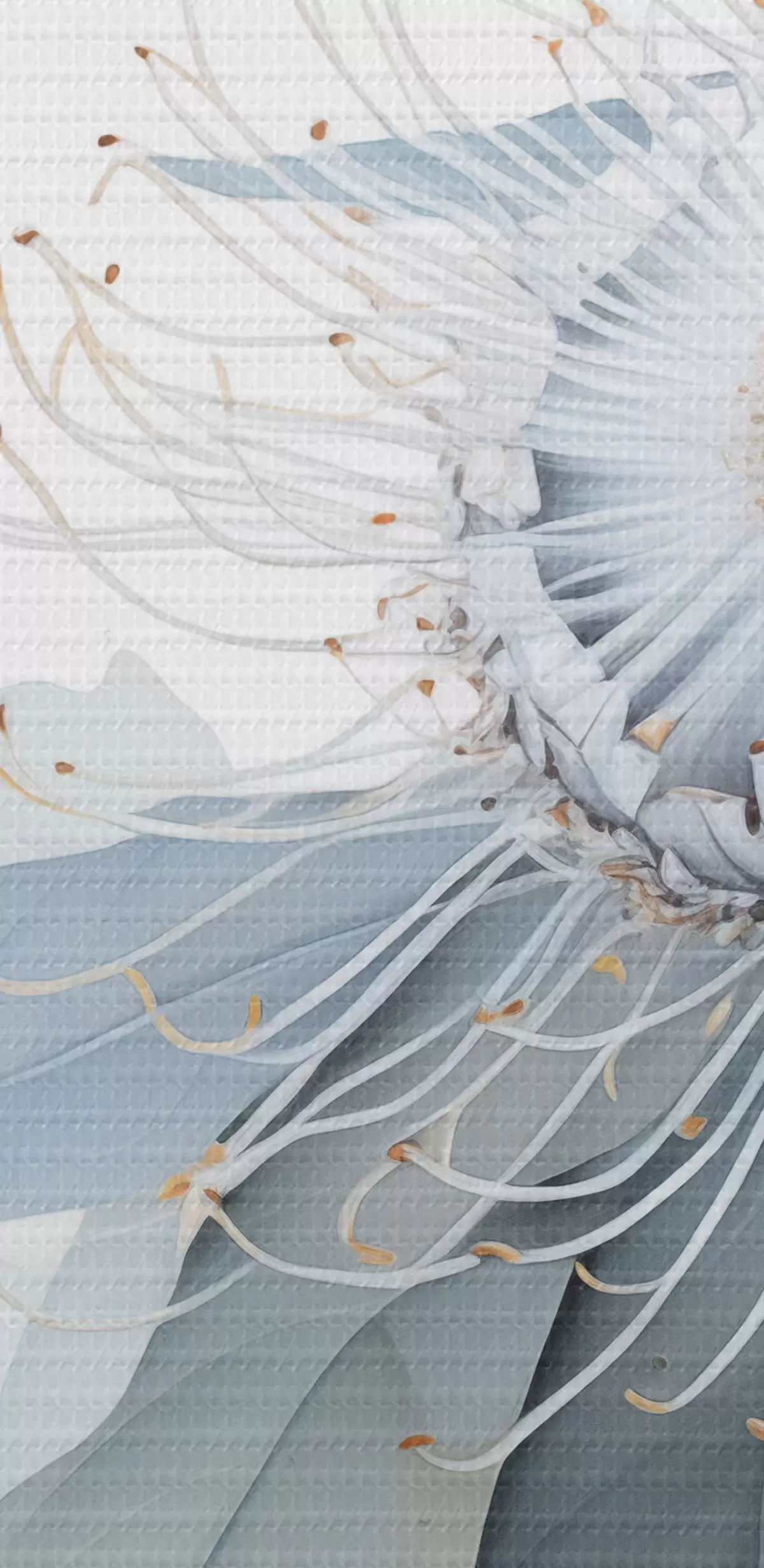 Drobny splot nici na tym płótnie przypomina powierzchnię profesjonalnych płócien artystycznych.