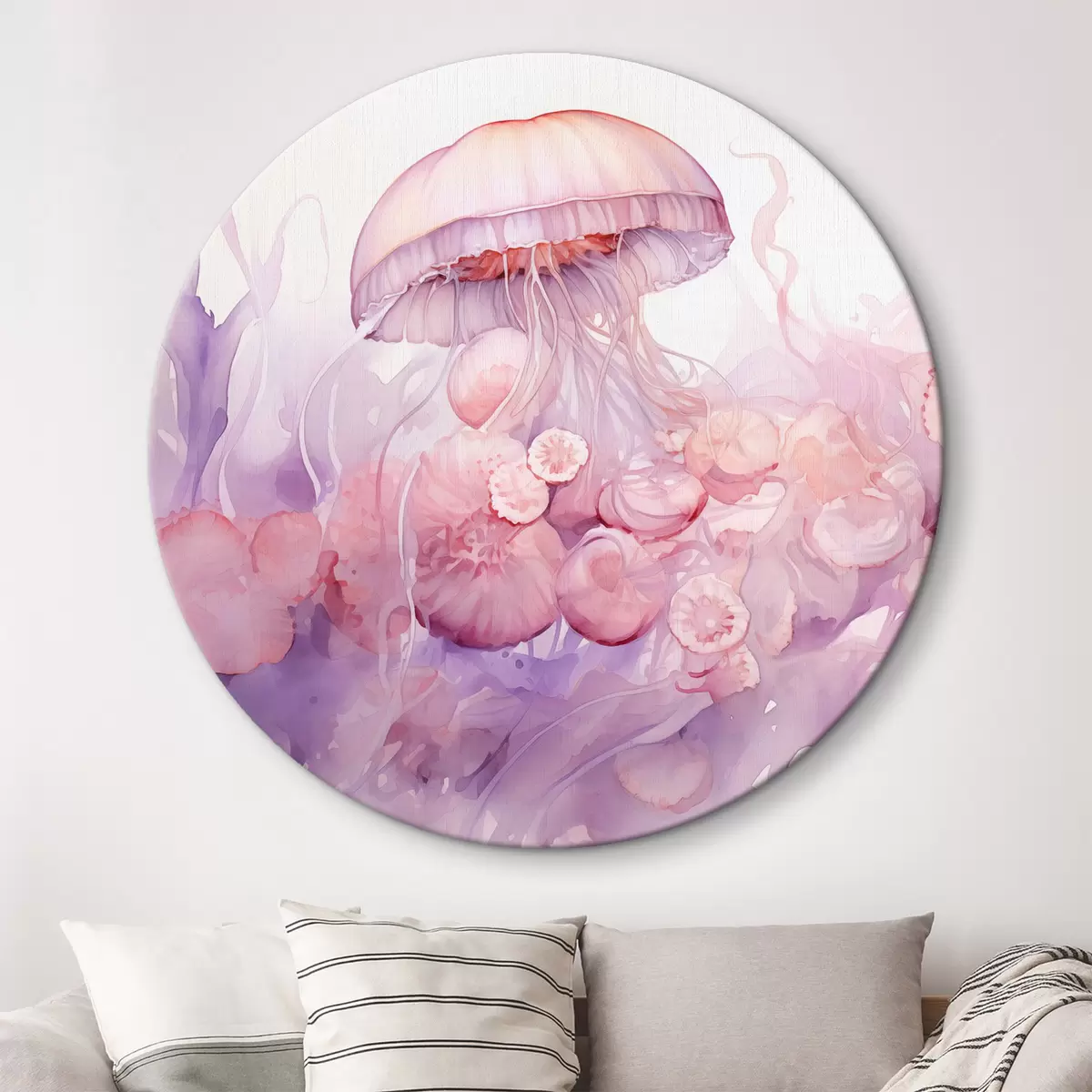 Okrągłe obrazy Różowe meduzy unoszące się pośród wiru delikatnych różowych i fioletowych odcieni, otoczone abstrakcyjnymi kształtami r42730