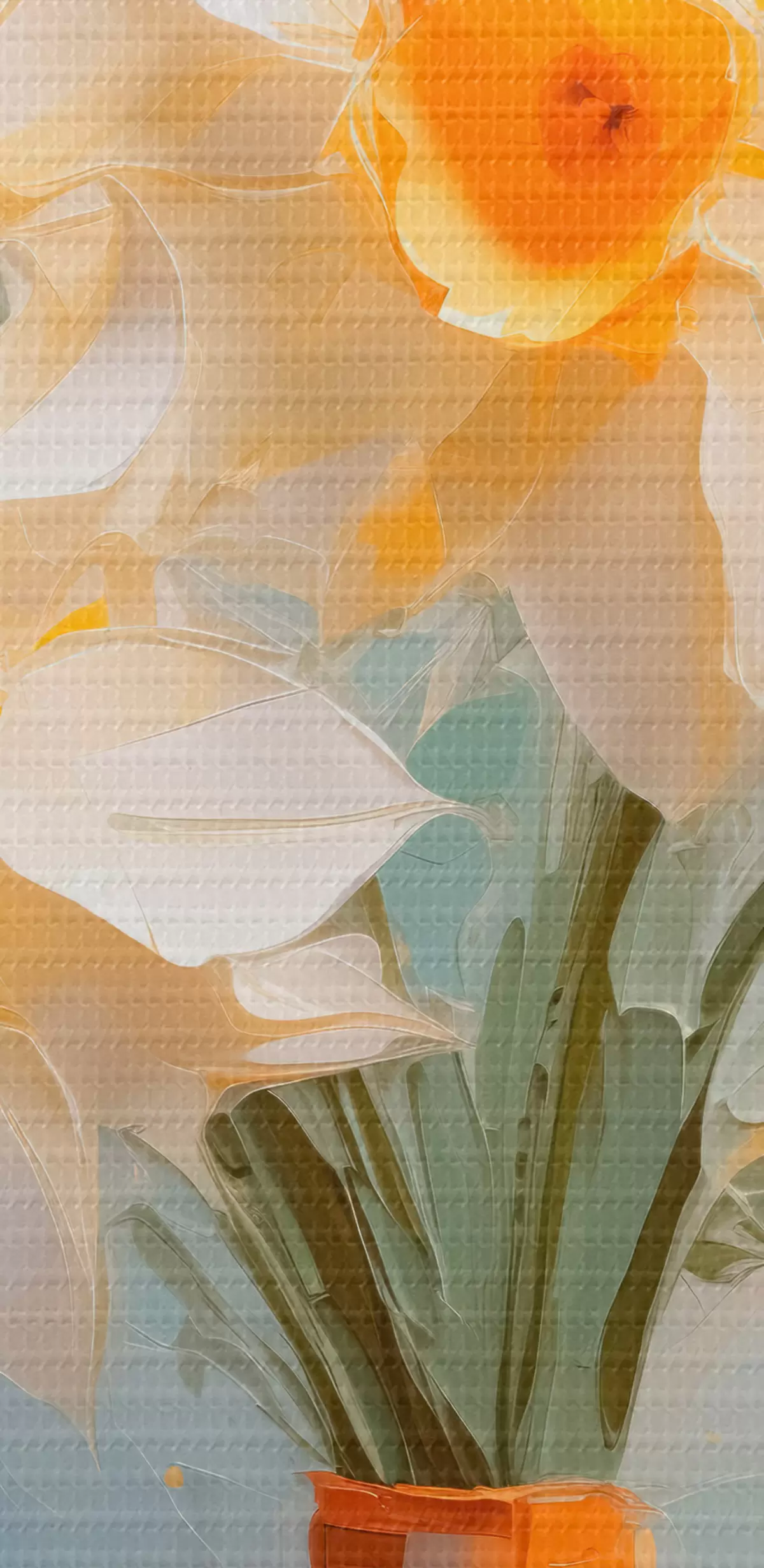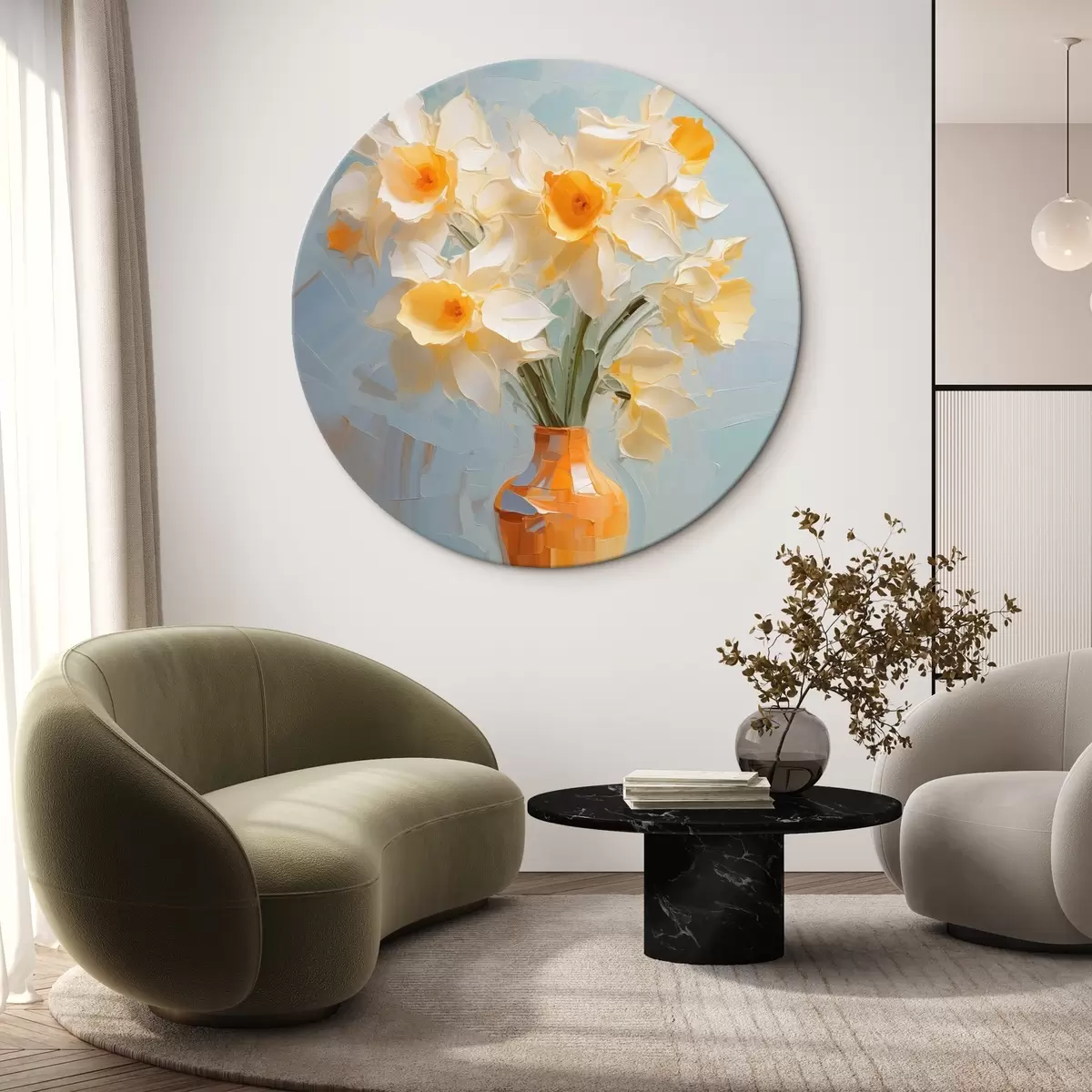 Okrągły obraz Bukiet żonkili w wazonie imitującym obraz Nr r42749