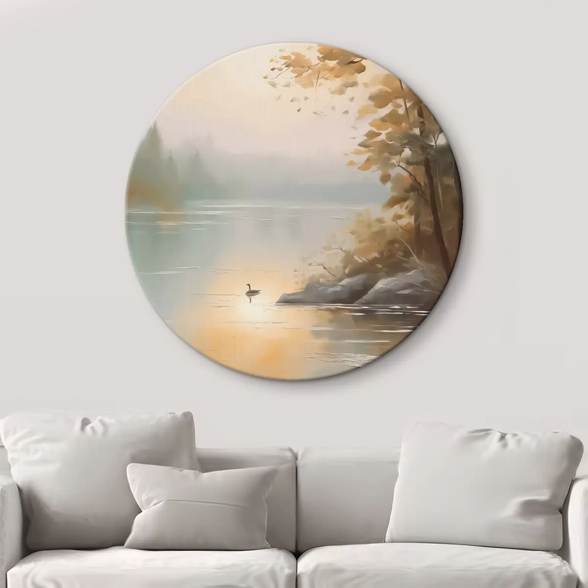 Okrągły obraz Drzewo przy stawie krajobraz Nr r42757