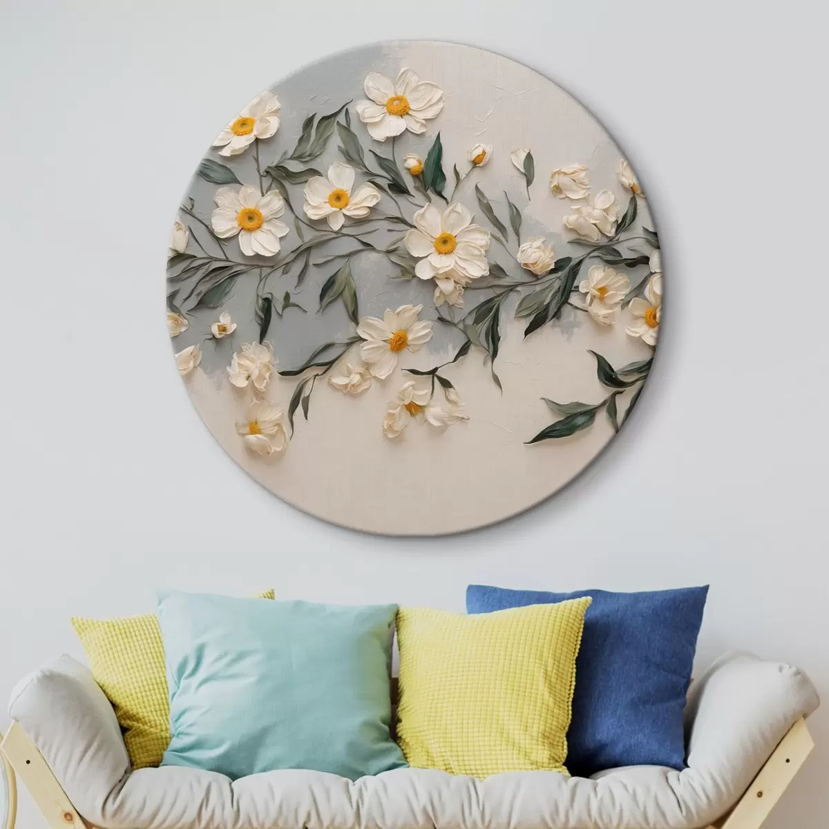 Okrągłe obrazy Białe kwiaty i liście na białym i szarym tle r42764