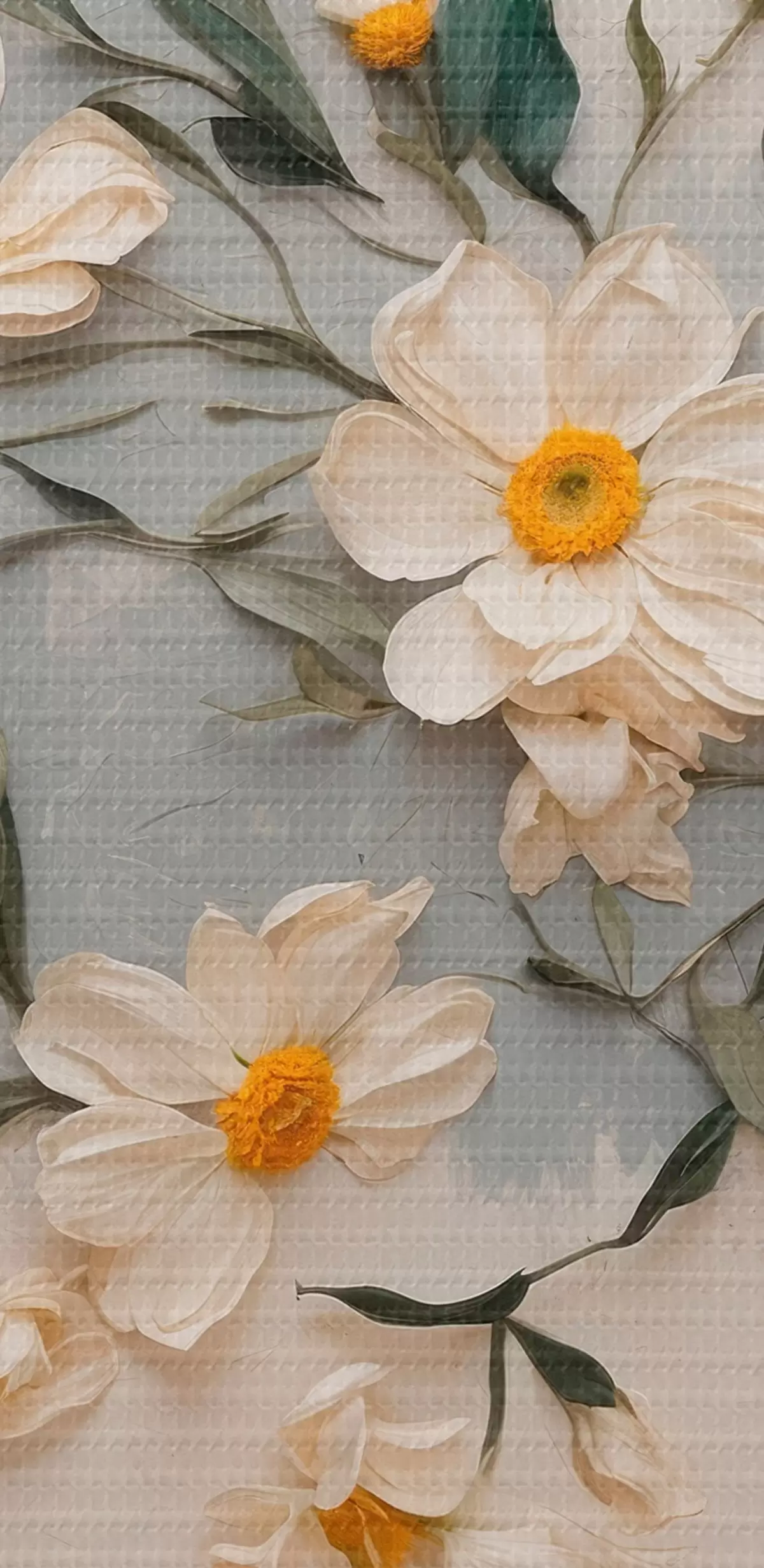 Okrągły obraz Białe kwiaty i liście na białym i szarym tle Nr r42764