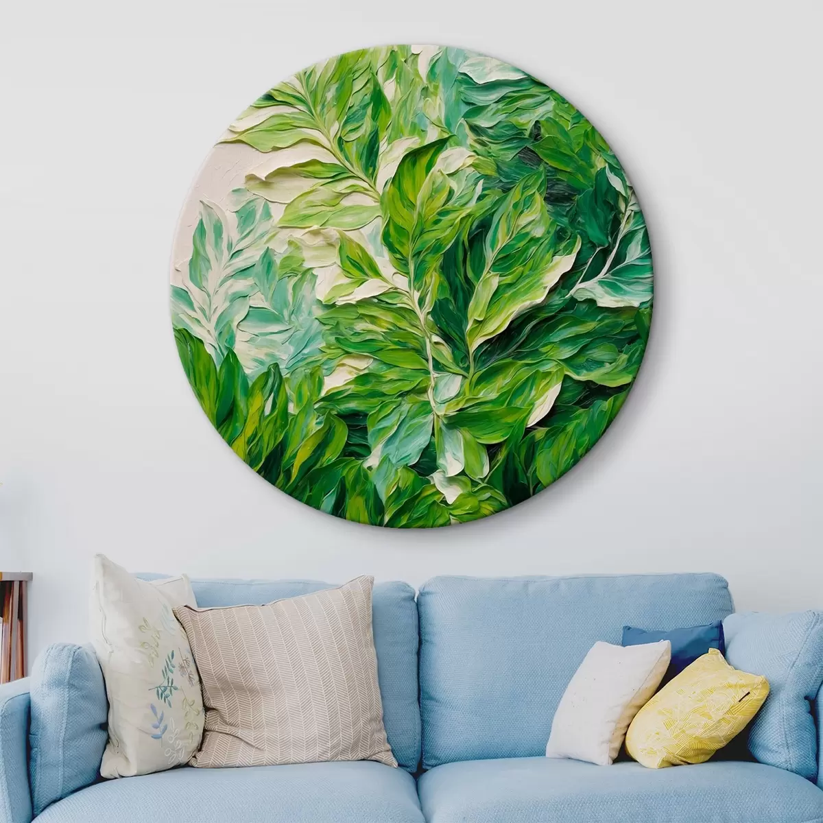 Okrągły obraz Tropikalne liście w stylu malarstwa olejnego Nr r42767