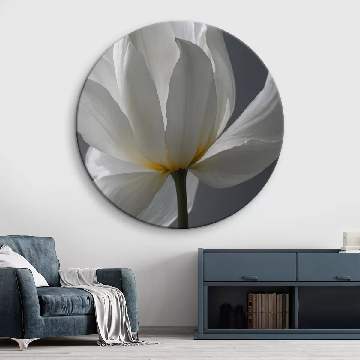Okrągły obraz Biały kwiat na szarym tle Nr r42779