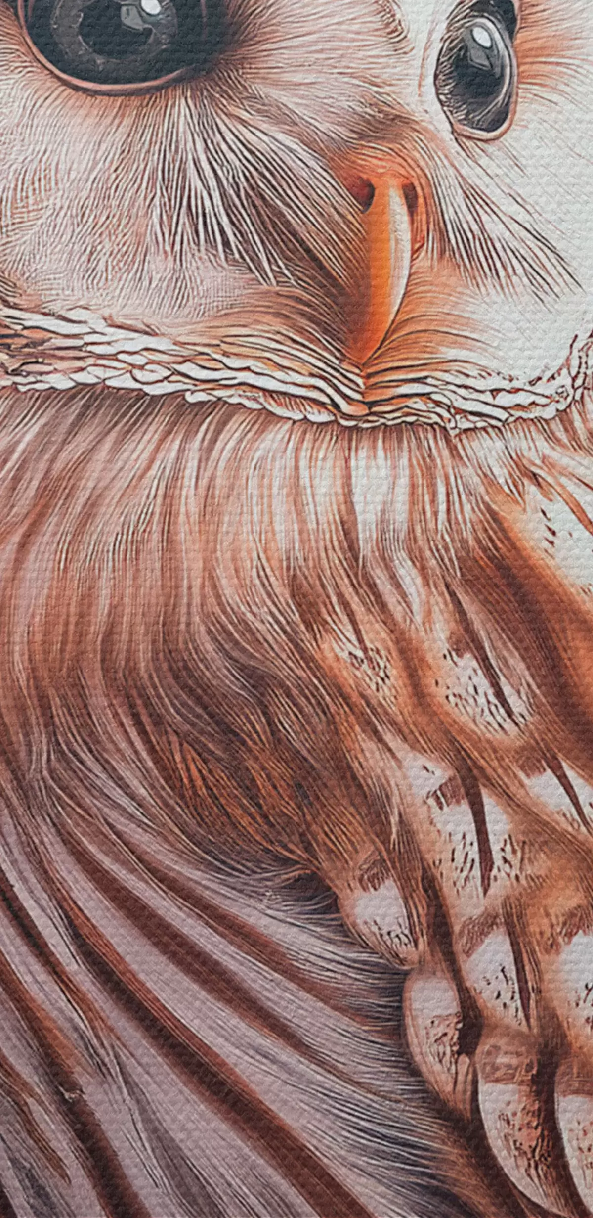 Drobny splot nici na tym płótnie przypomina powierzchnię profesjonalnych płócien artystycznych.