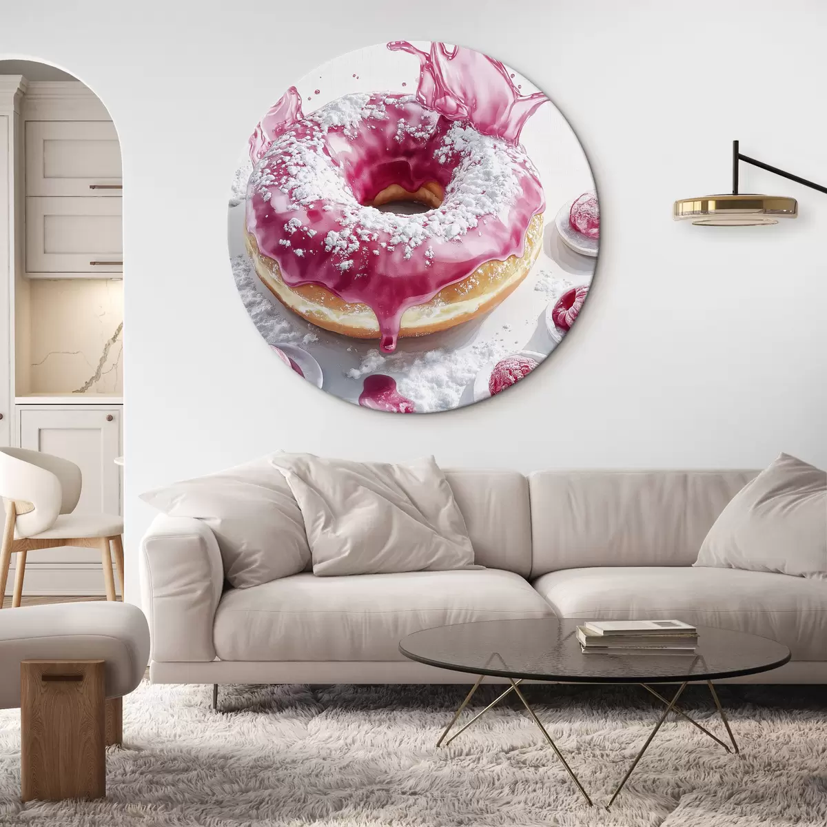 Okrągły obraz Realistyczny pączek z jagodami i różową polewą Nr r42790