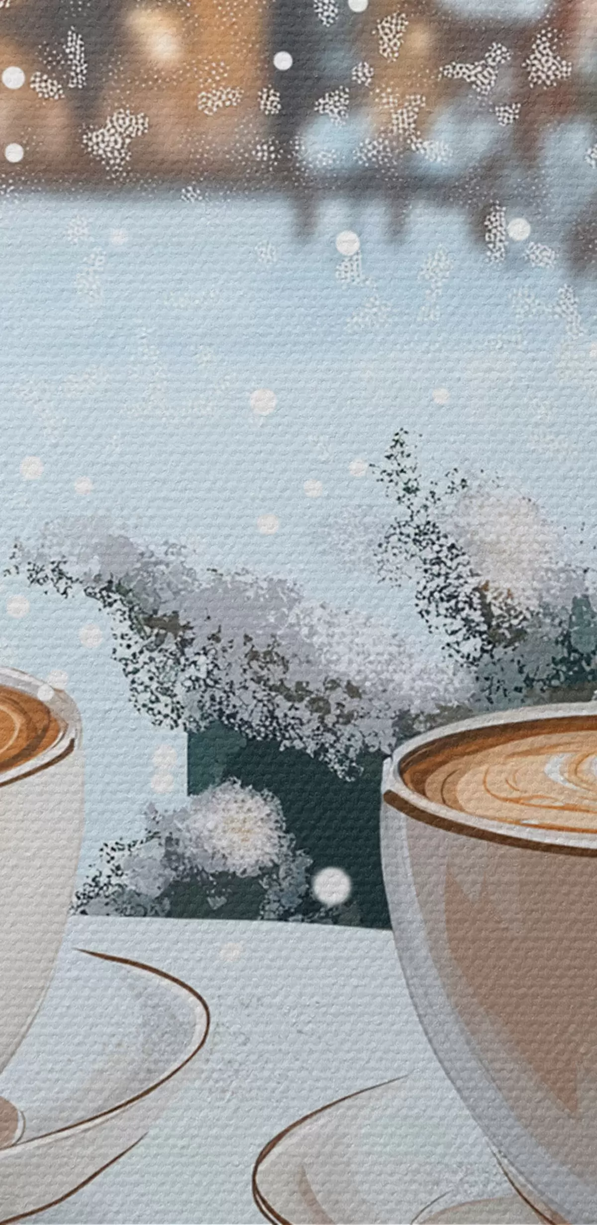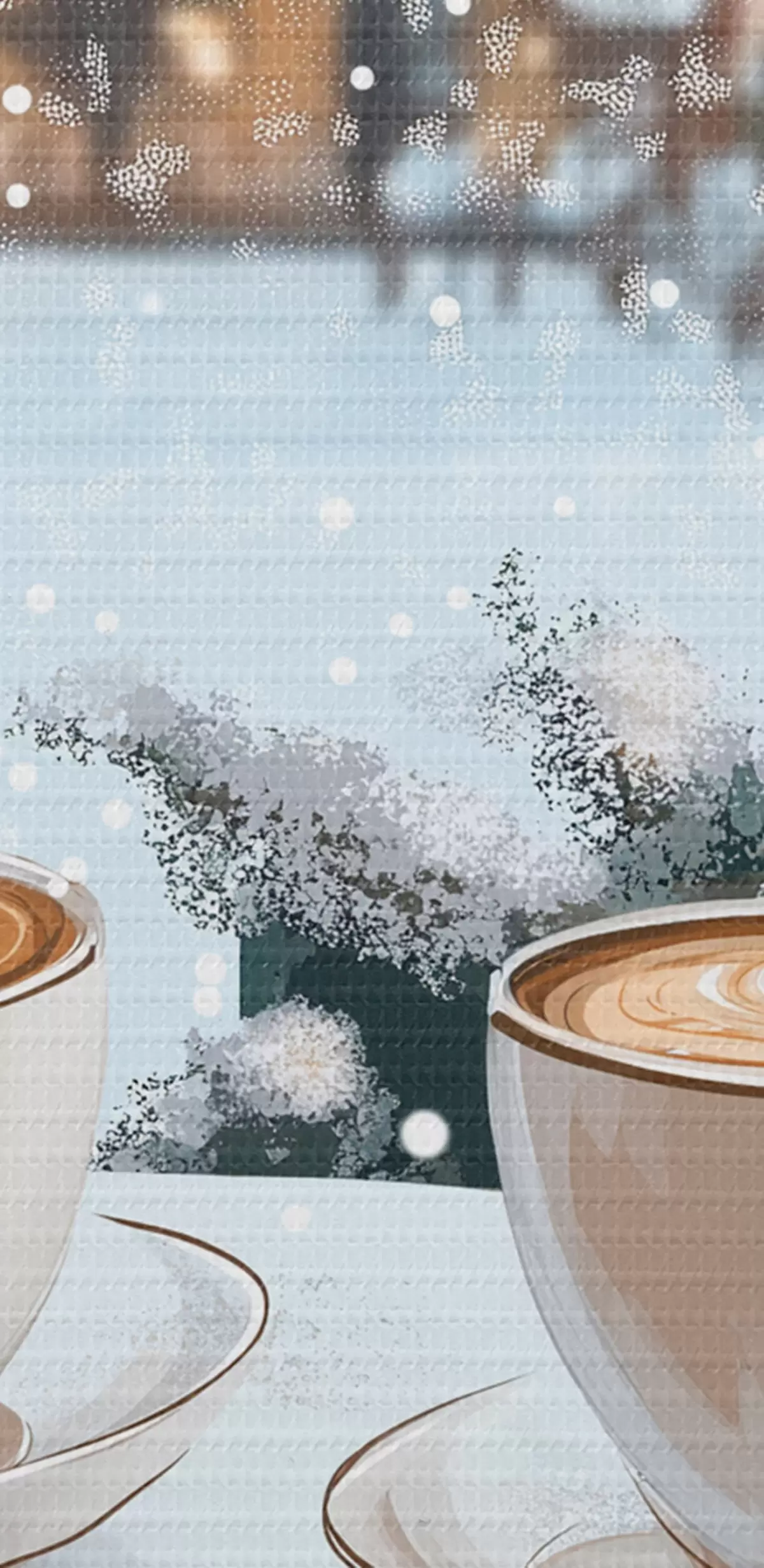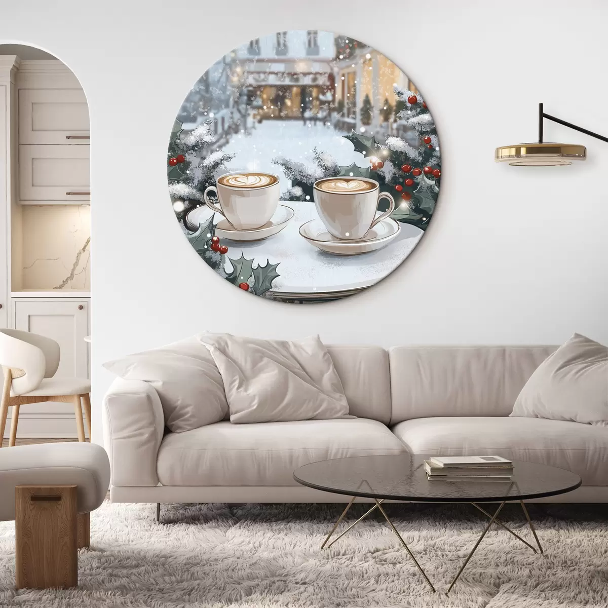 Okrągły obraz Filiżanki kawy w przytulnej kawiarni, zimowa estetyka, styl boho Nr r42797