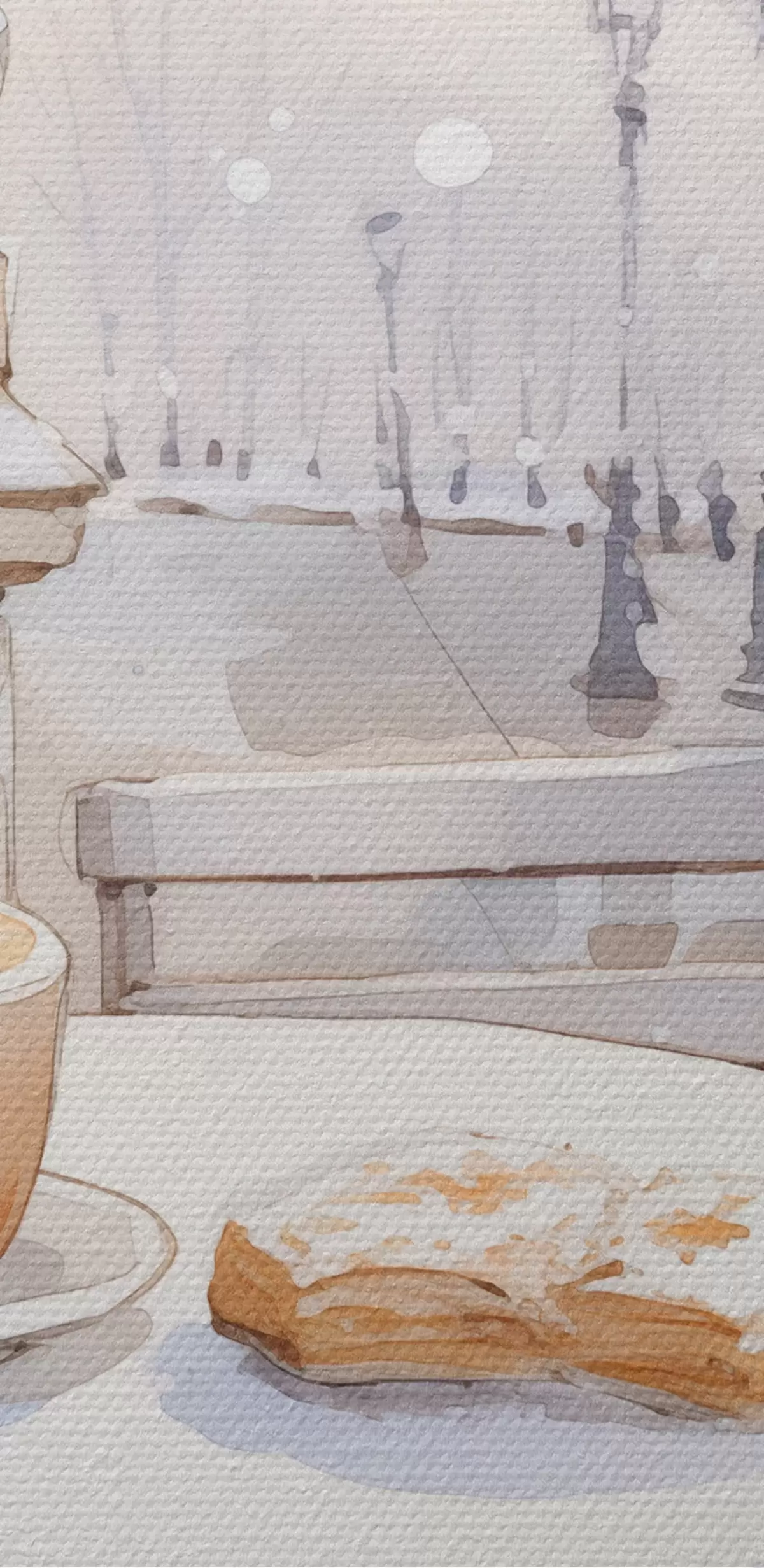 Okrągły obraz Estetyczna kawiarnia uliczna, Francja, świeża piekarnia, rysunek w stylu akwareli Nr r42798