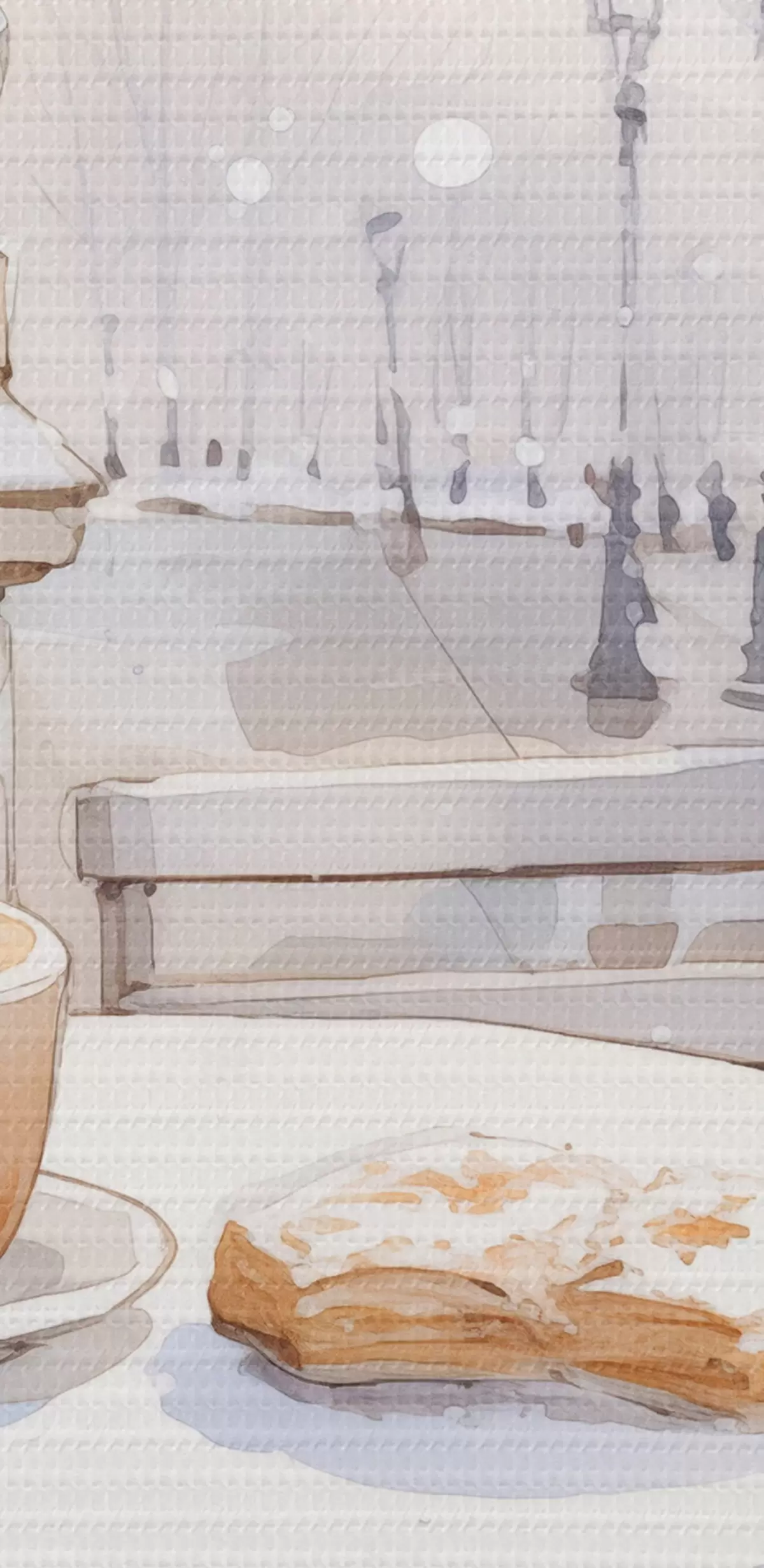 Okrągłe obrazy Estetyczna kawiarnia uliczna, Francja, świeża piekarnia, rysunek w stylu akwareli r42798