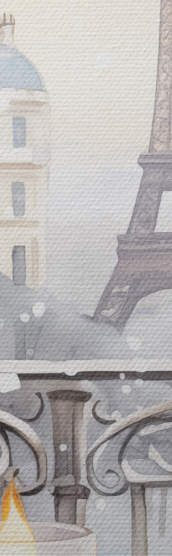 Okrągłe obrazy Piękna kawiarnia w Paryżu, filiżanki do herbaty, romantyczny widok, zima, styl akwareli r42799
