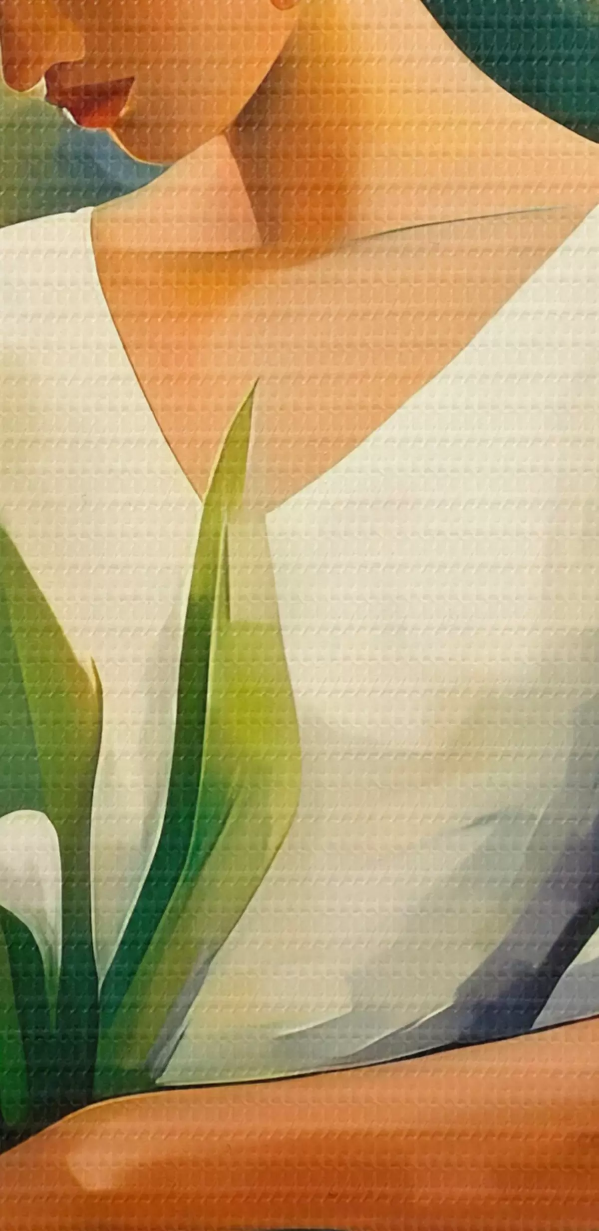 Drobny splot nici na tym płótnie przypomina powierzchnię profesjonalnych płócien artystycznych.