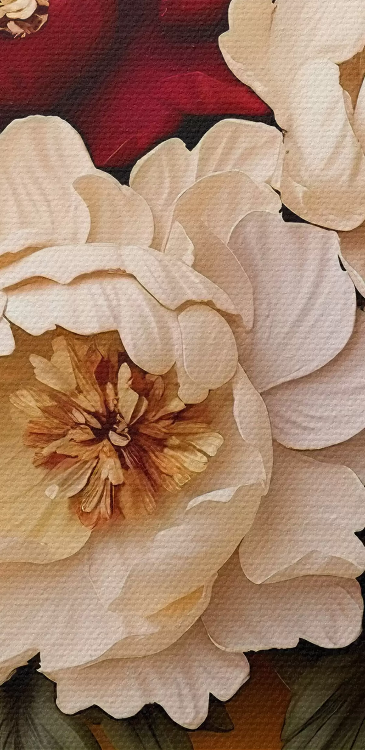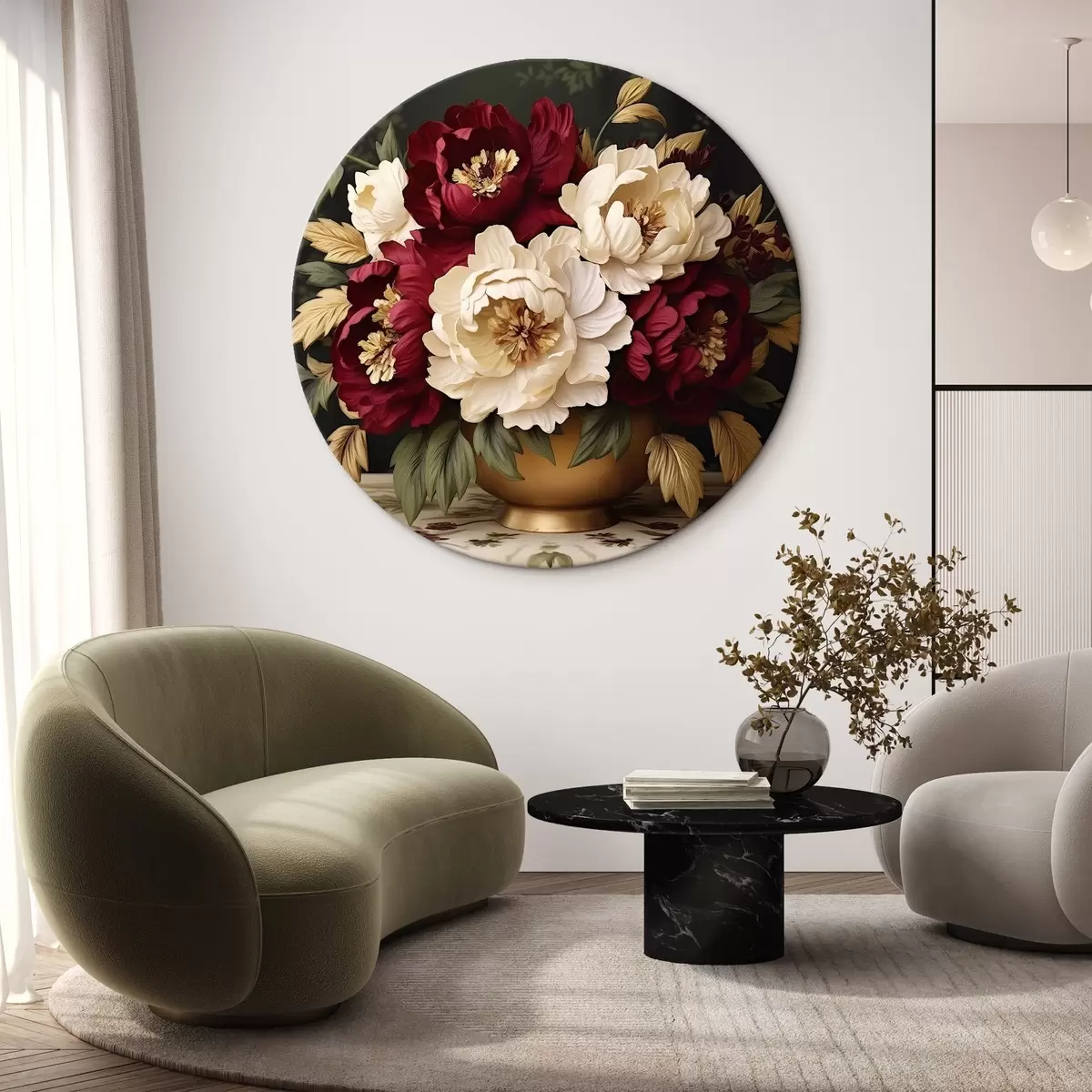 Okrągły obraz Czerwone i białe piwonie w wazonie Nr r42820