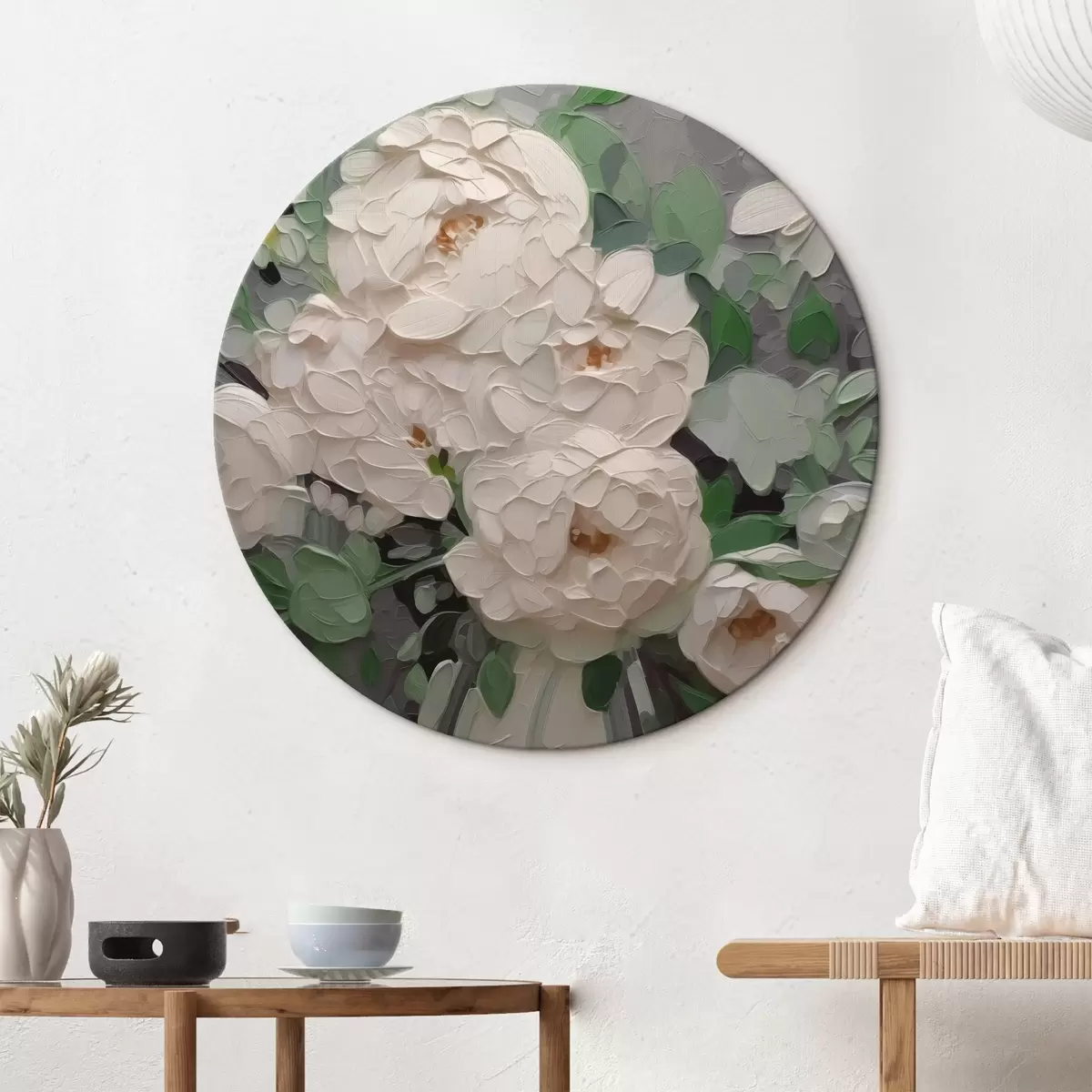 Okrągły obraz Piwonie imitujące pociągnięcia malarskie Nr r42835
