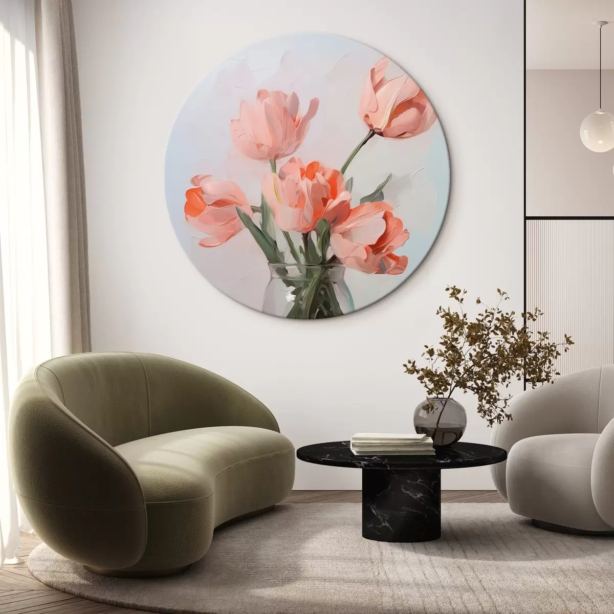Okrągły obraz Obraz imitujący tulipany w wazonie Nr r42836