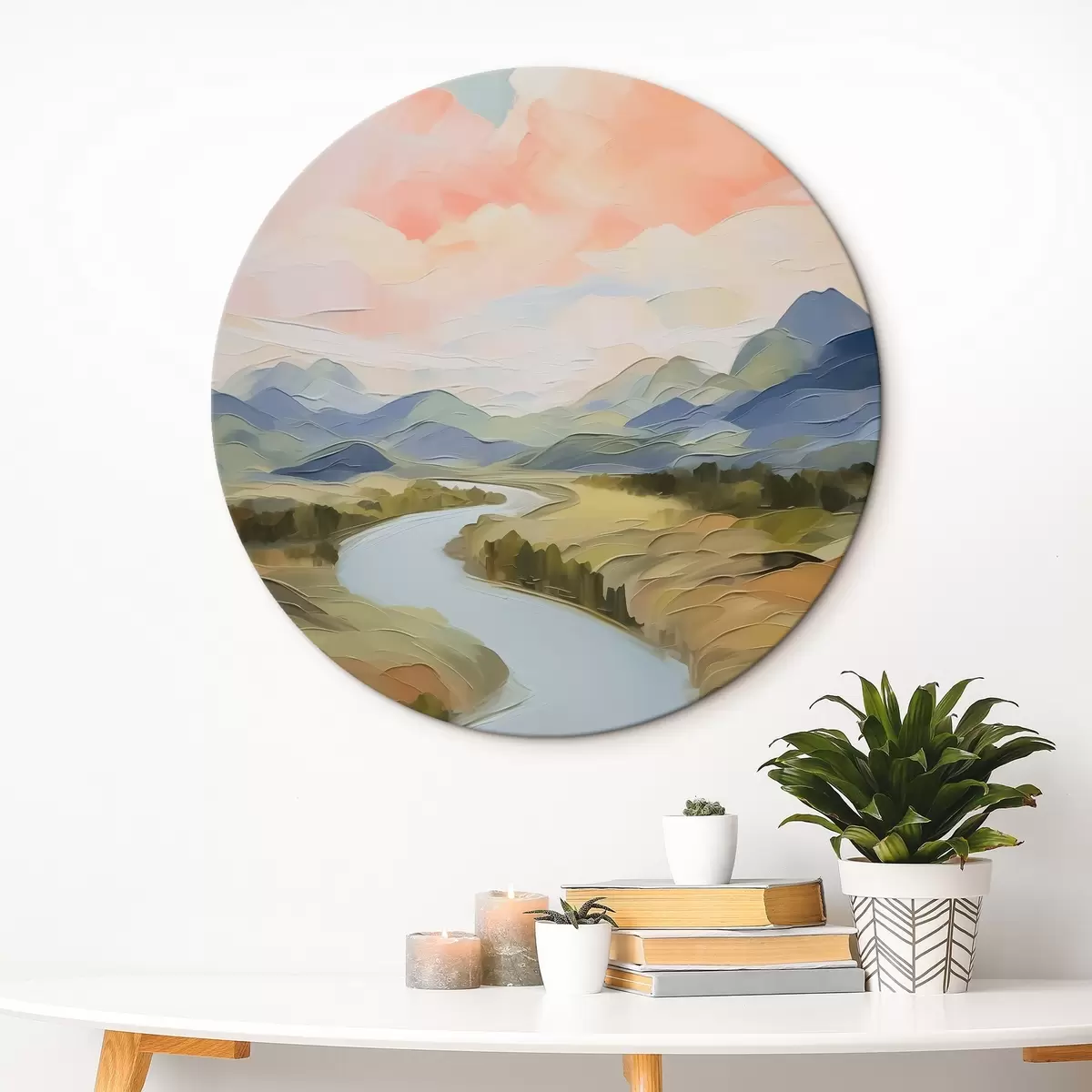 Okrągły obraz Rzeka w dolinie krajobraz imitacja malarstwa Nr r42844