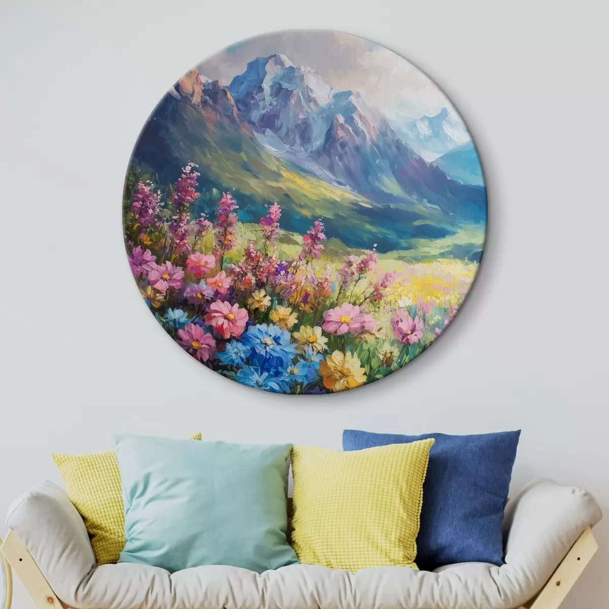 Okrągłe obrazy Kwitnąca łąka w górach r42855